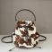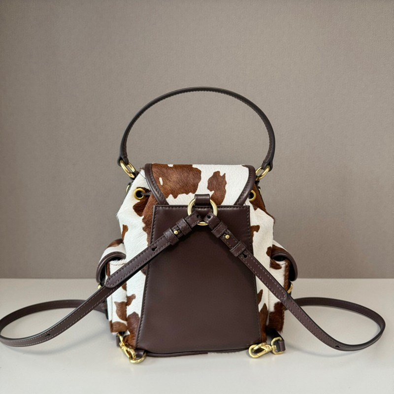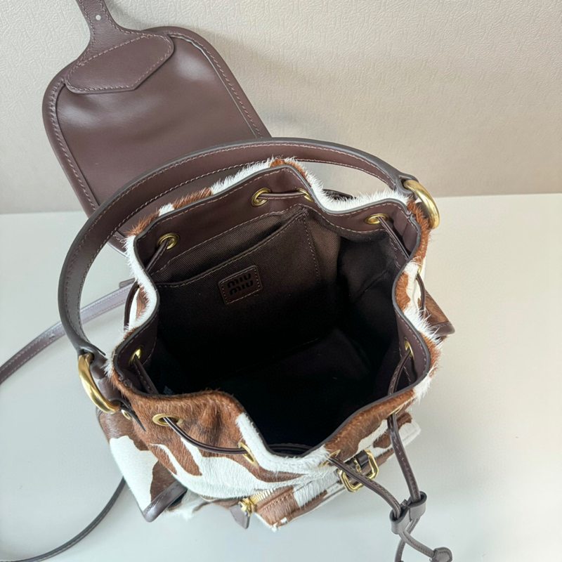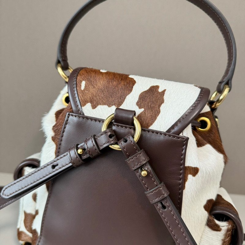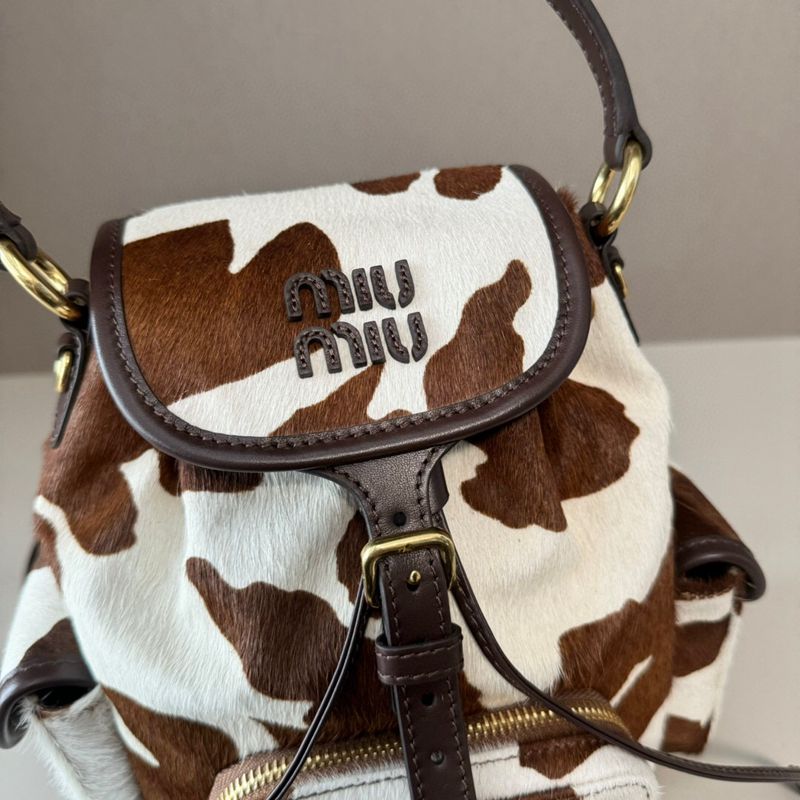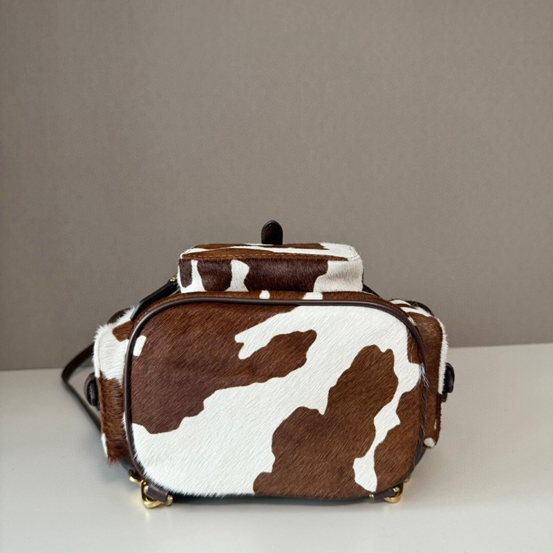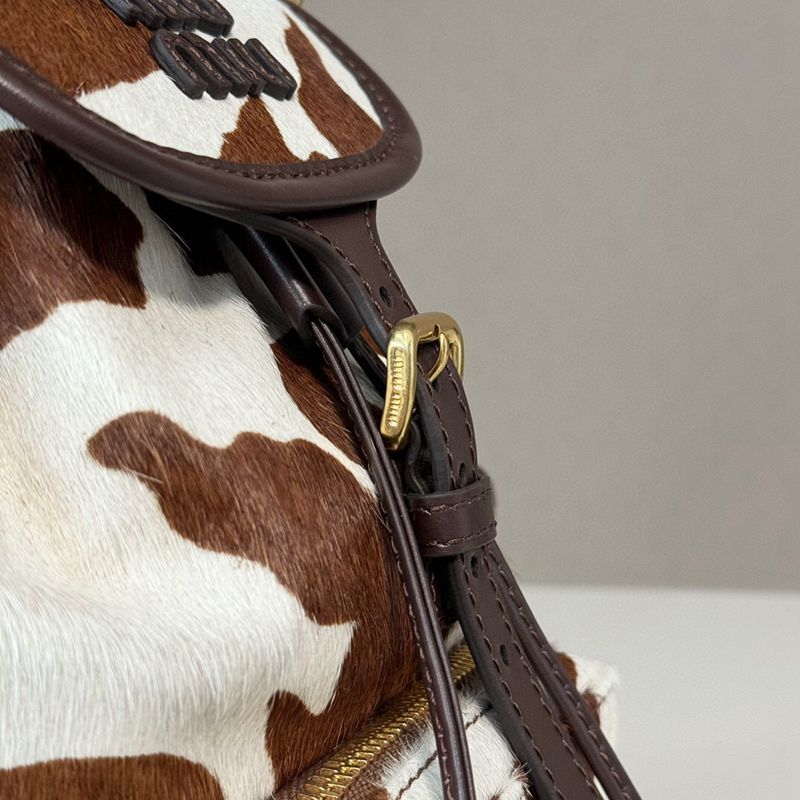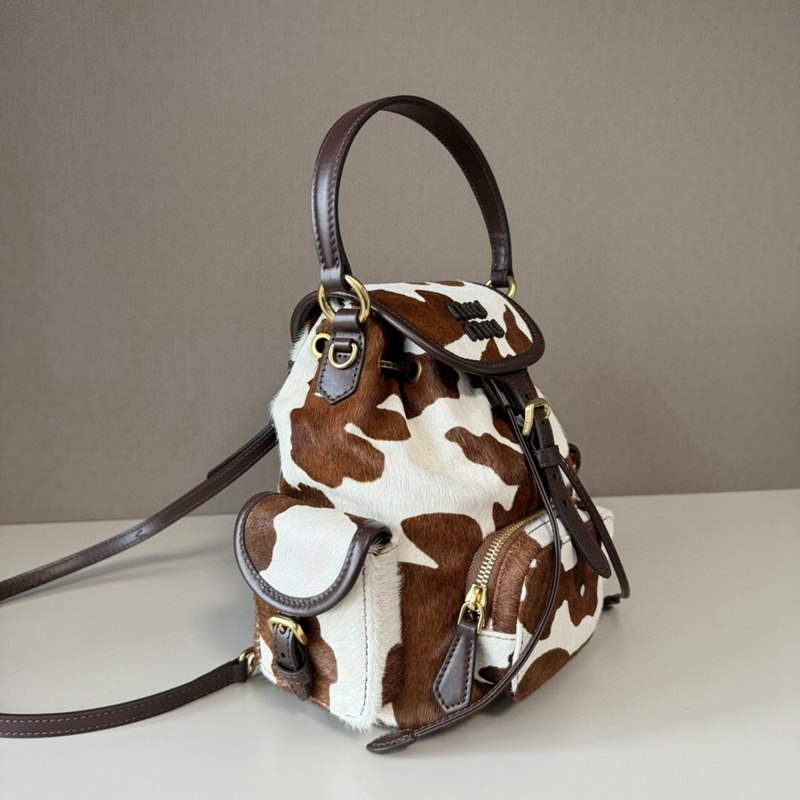 ST64579 MIU MIU cow patterned fur backpack with brown and white retro charm, can be carried by hand or carried on both shoulders 5BZ043