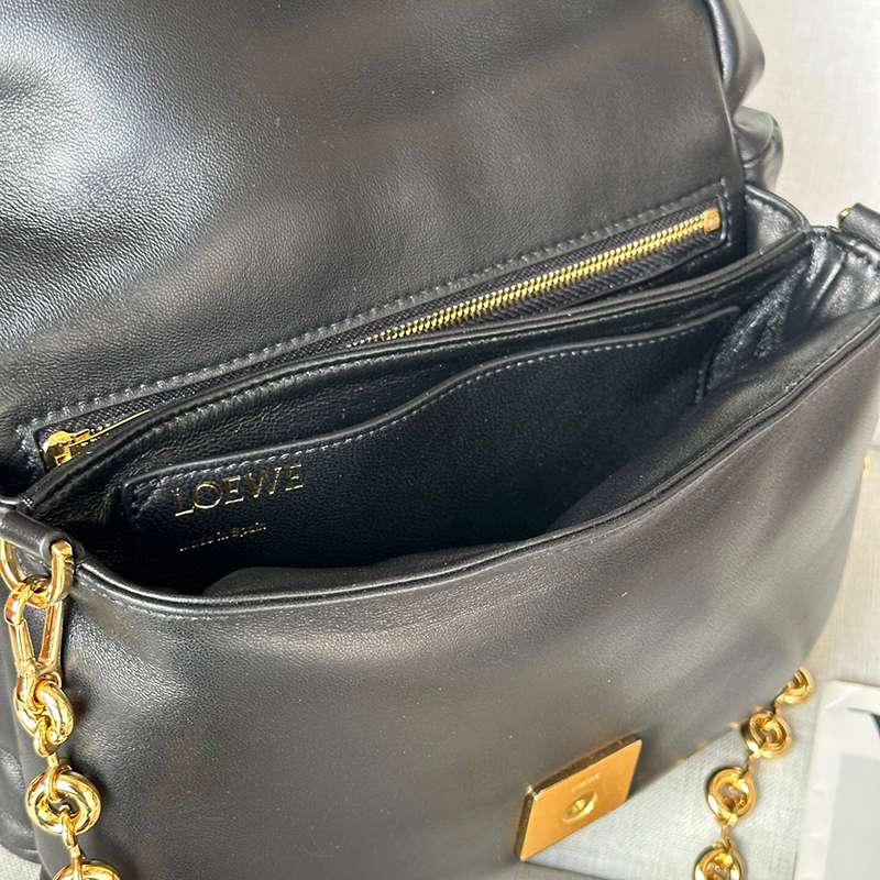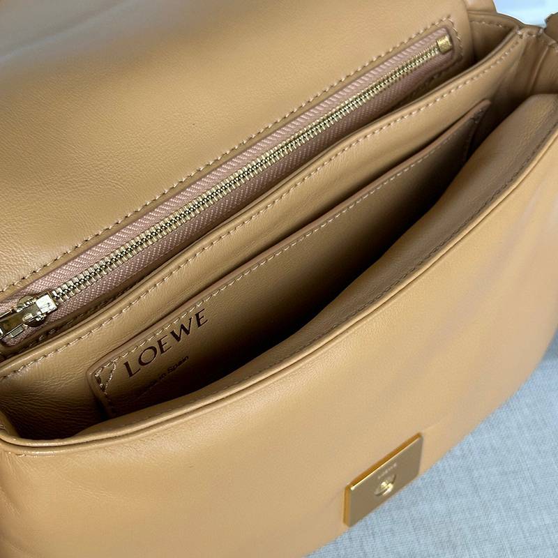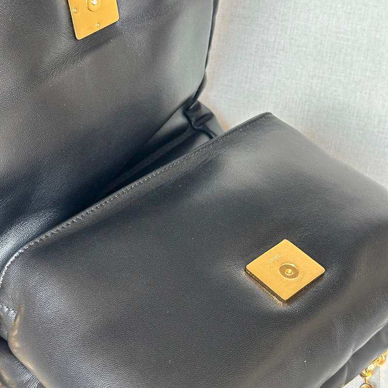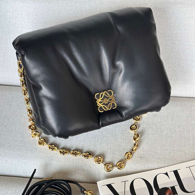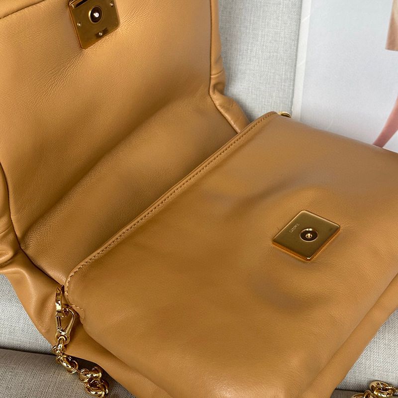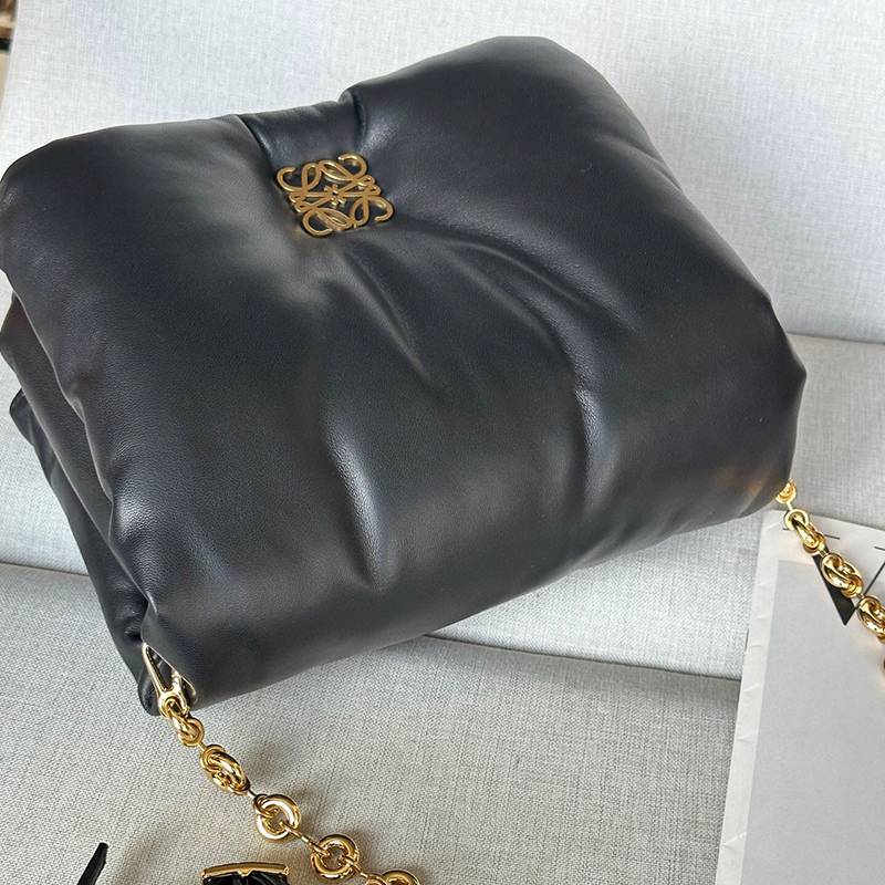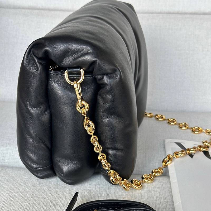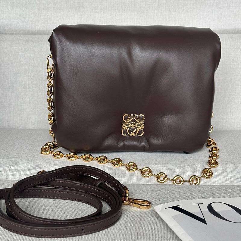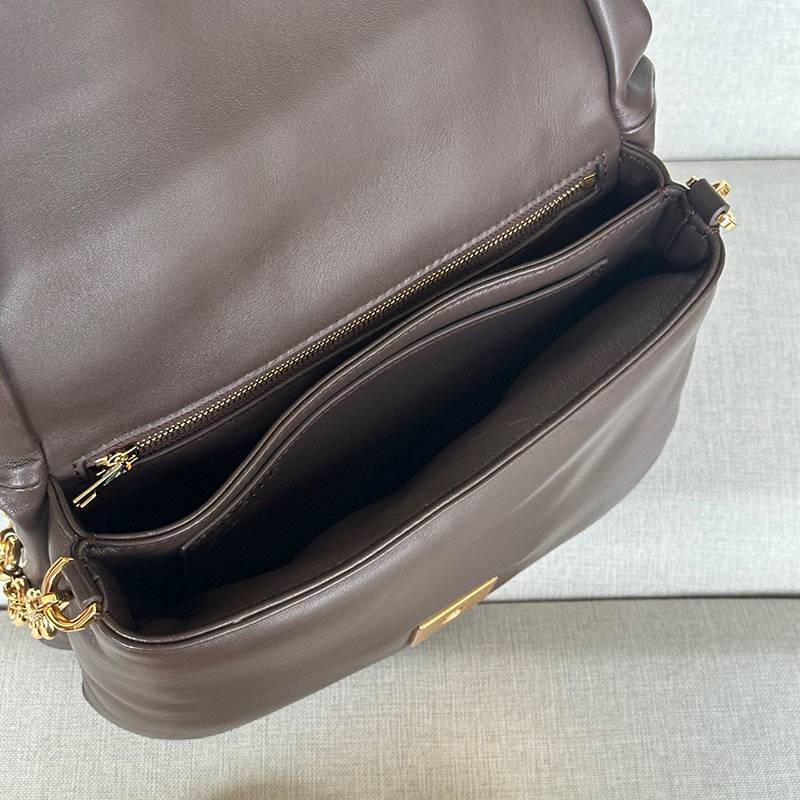 2025 Shiny Leather Puffer Goya Handbag Featuring shiny sheepskin with goose feather padding, it offers a whole new sensory and tactile dimension, equipped with a detachable metal donut chain and long shoulder strap Size 23-13-6cm Model 9803 chocolate color