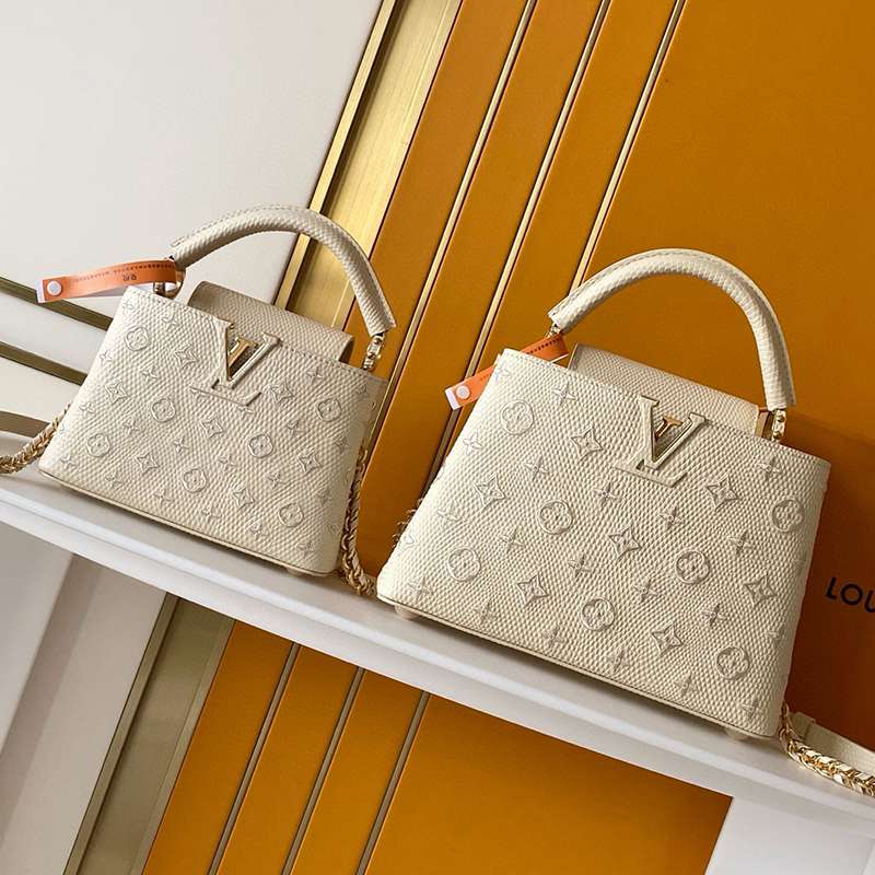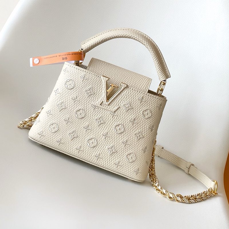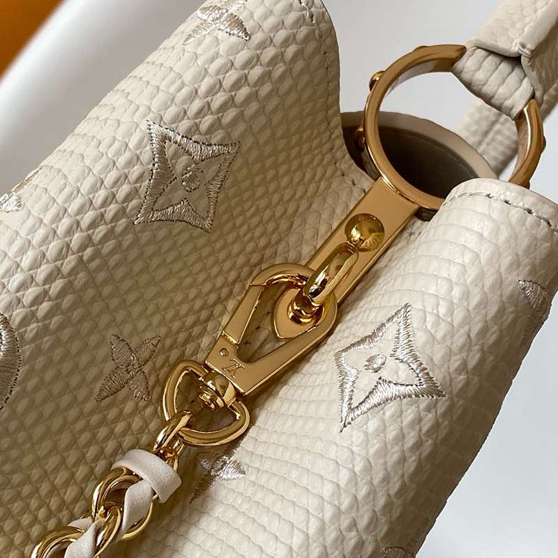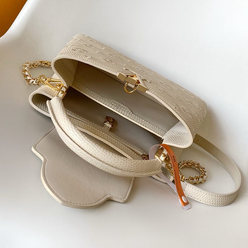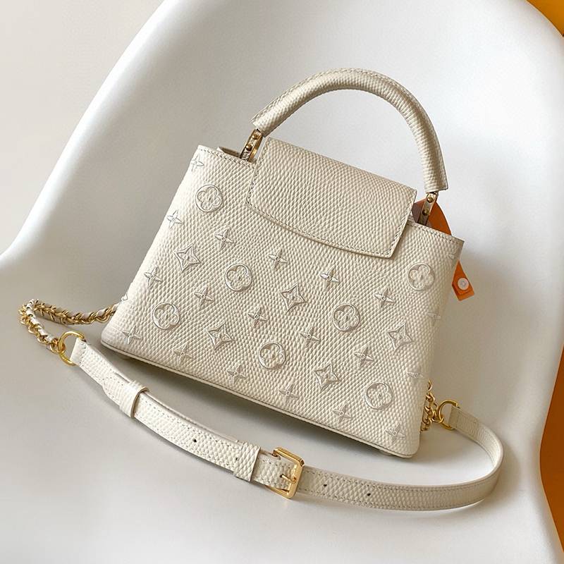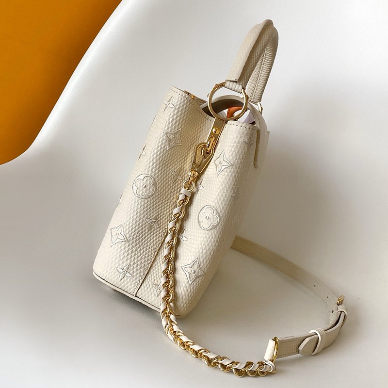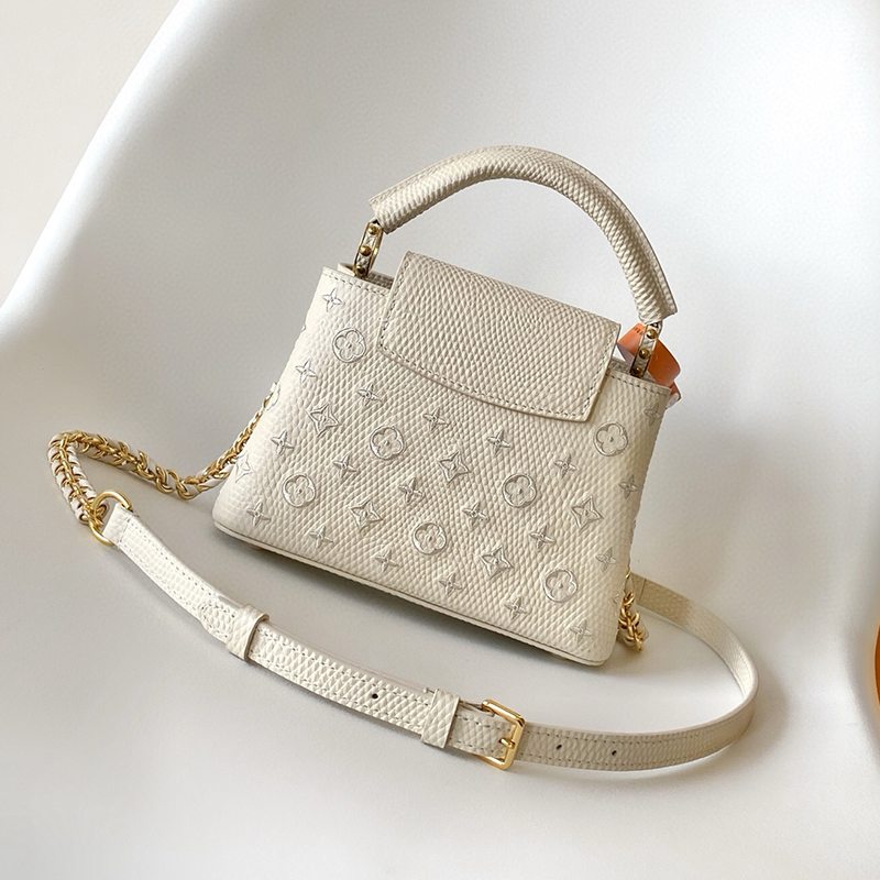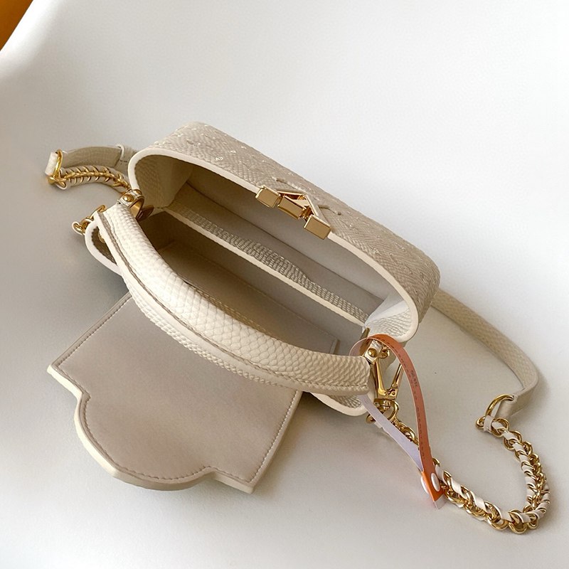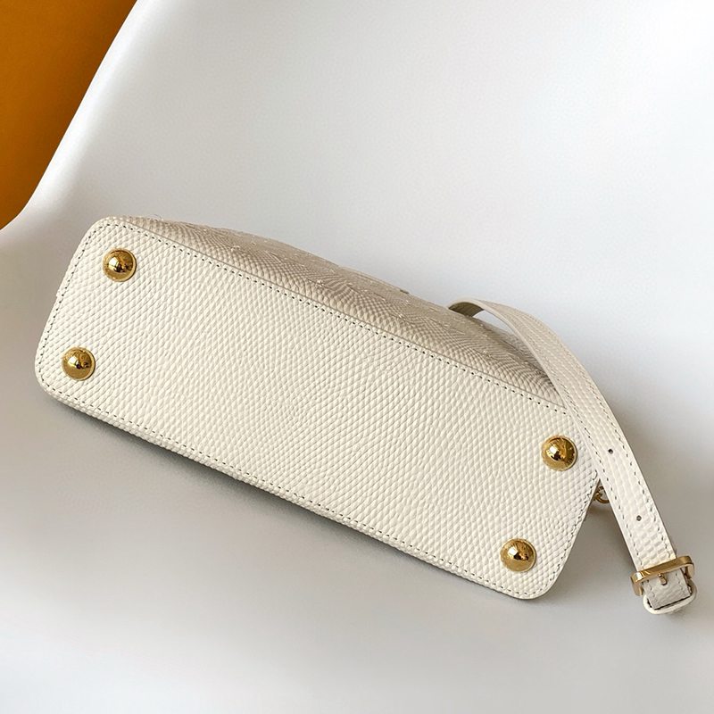 ST17677 LV Lizard Pattern Capucines BB Handbag Exquisite Lizard Leather Outer Sheepskin Inner Cream White Shoulder Bag M48865