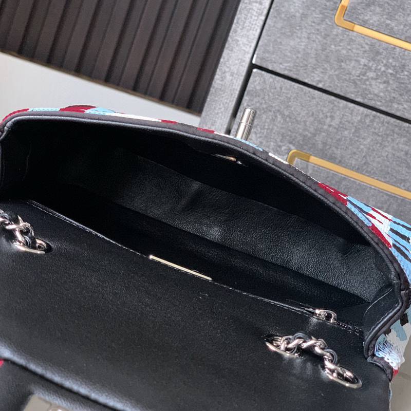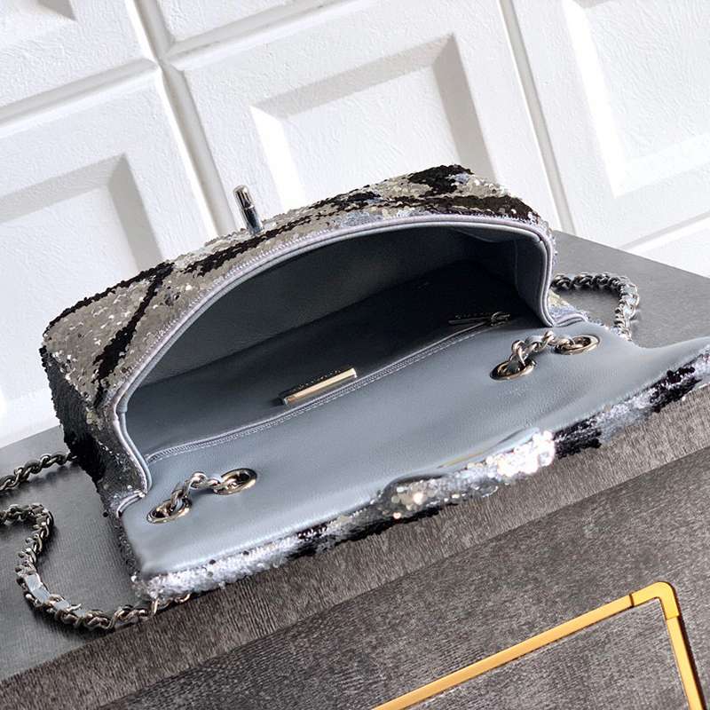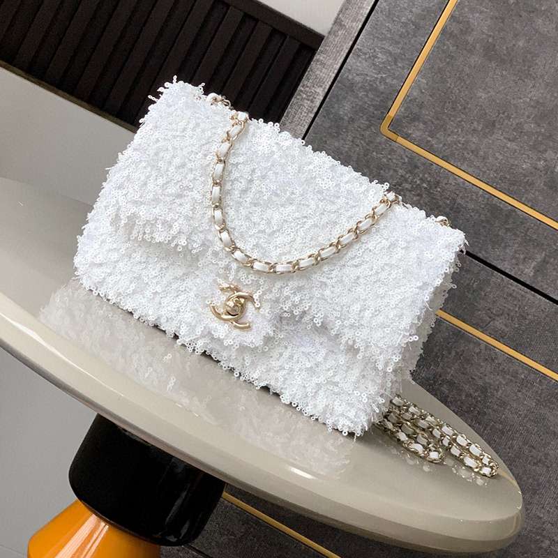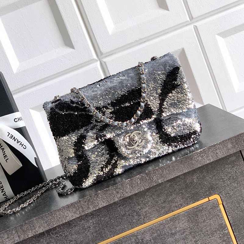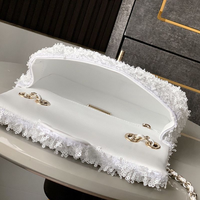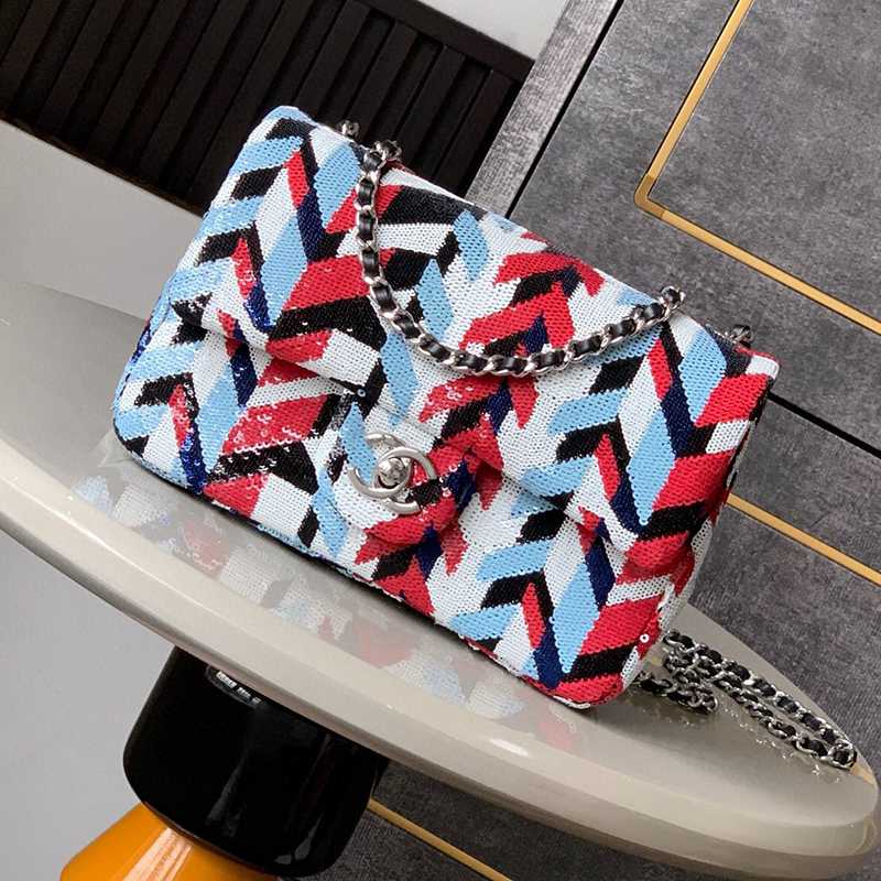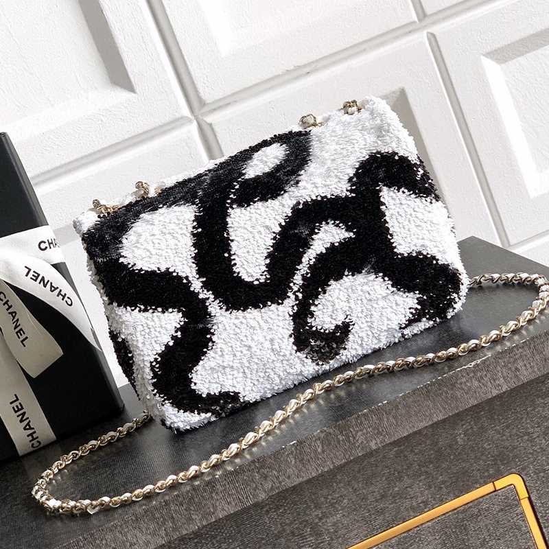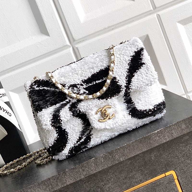 White Paired with Black "butterfly sequins, CHANEL 25K heavyweight high-end handmade workshop embroidery, dense sequins, shaped CF super shiny sequin bead bags can be pre ordered for autumn and winter filters, SO BLACK heart explosion street super cool c physical items are simply stunning, super rare explosive bead pieces, high cost performance, the most worthwhile bag to buy this season, the splicing of color flower sequins, sparkling and charming, simply infinitely magnifying its charm, elegant and fashionable temperament are synonymous with it, as well as a banquet bag that is also suitable for a lifetime collection of bags, 20cm