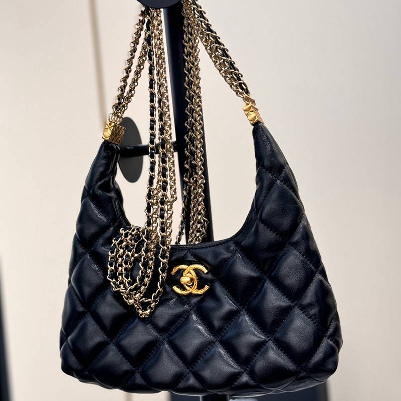 The advanced handmade workshop series of 24A chain Hobo is simply stunning In the high-end handicraft workshop, you can easily find the perfect bag! Handheld, crossbody, single shoulder, neck hanging: Anyway, it's the most beautiful and cute. The mini version looks very cute and versatile. It can be carried crossbody or held in hand. I've seen the car keys, phone, lipstick, no problem. Size: 20X20.5X7.5 cm Model: 496600105