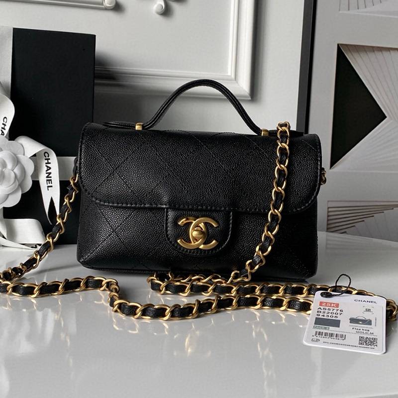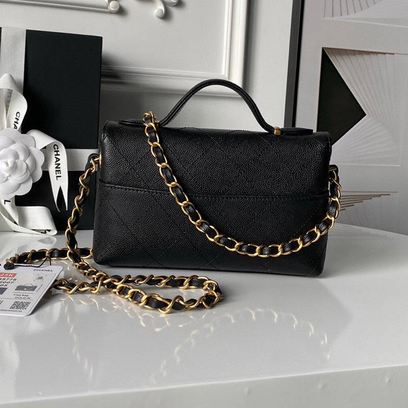 Chanel 25k new handle cover bag AS5776 high-end series classic diamond grid pattern+handle+chain calf leather with gold metal compact appearance design capacity is also good for daily matching. The luxurious texture is easy to wear to show beauty and taste temperament. Size: 11.5x19.5x5cm