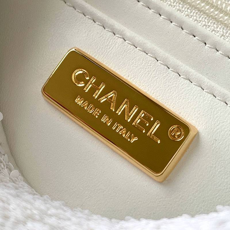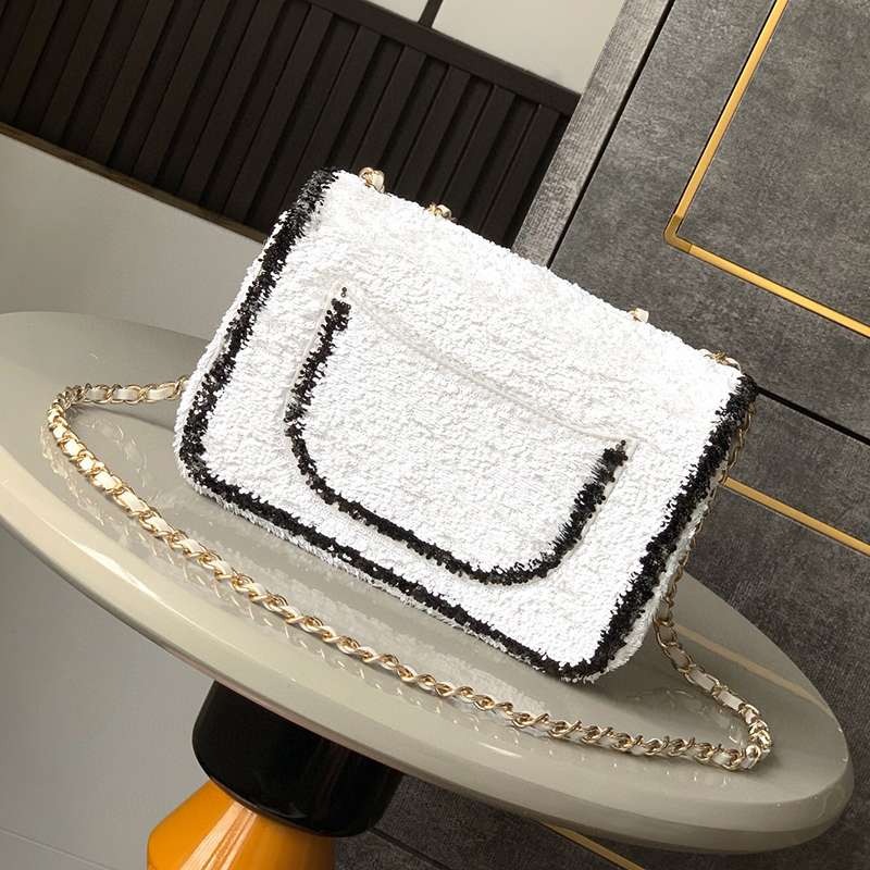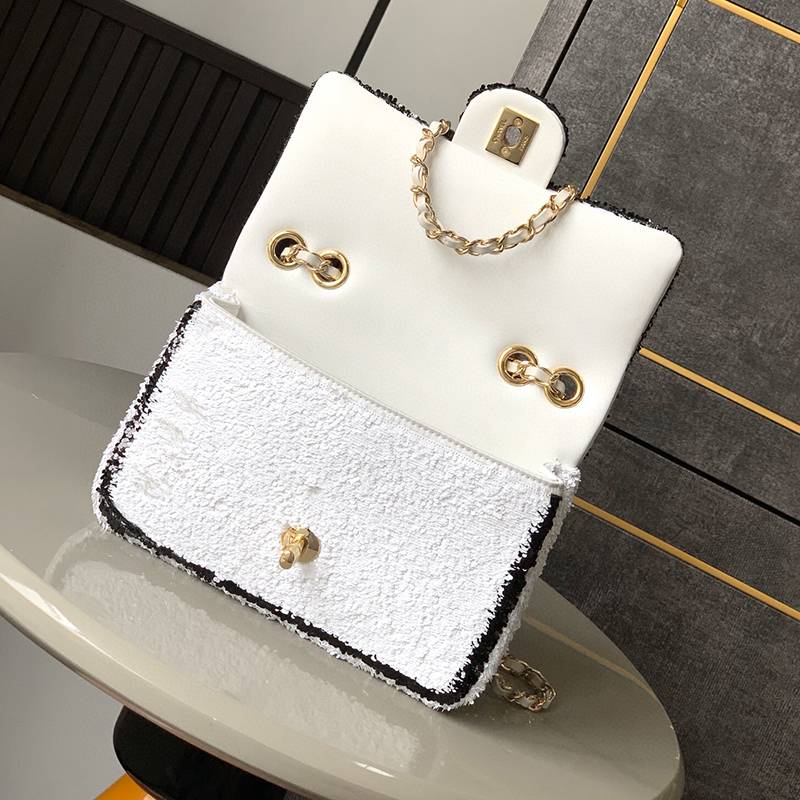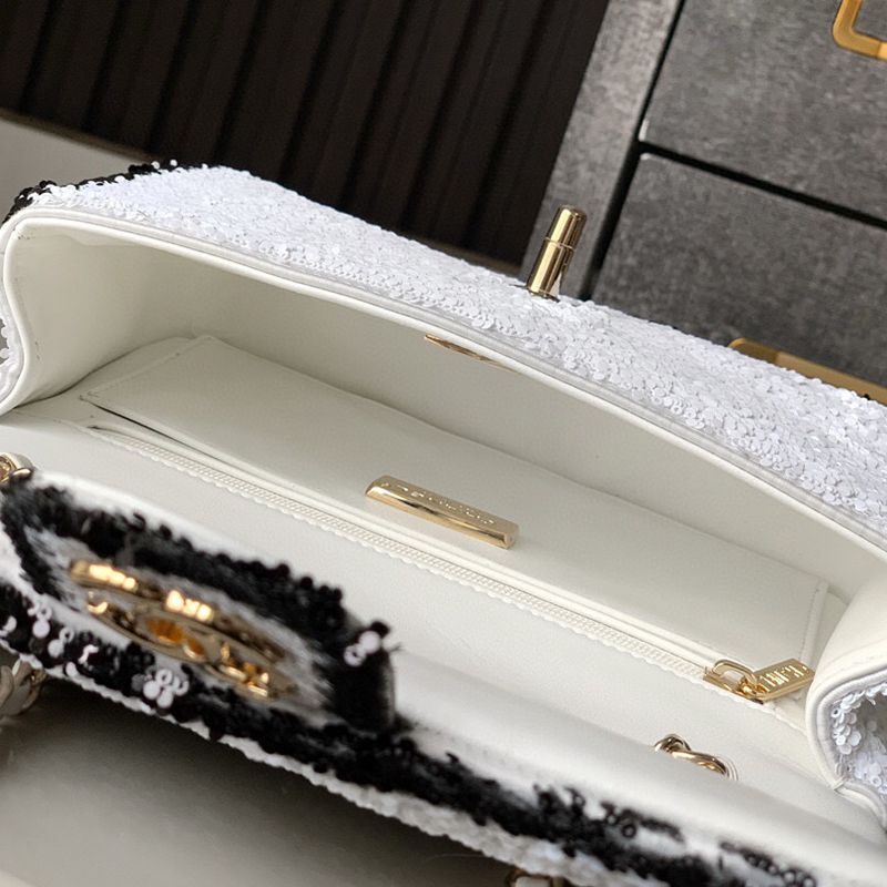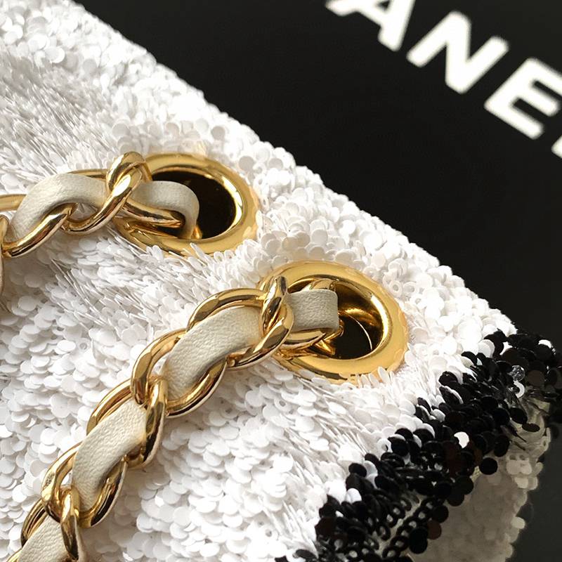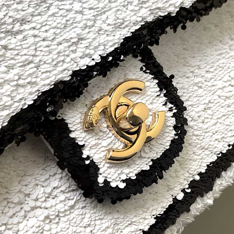 ST60087 CHANEL explosive sequin embroidered white paired with black dense sparkling sequin classic and fashionable double-C logo shoulder bag