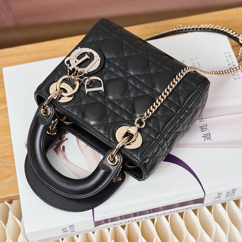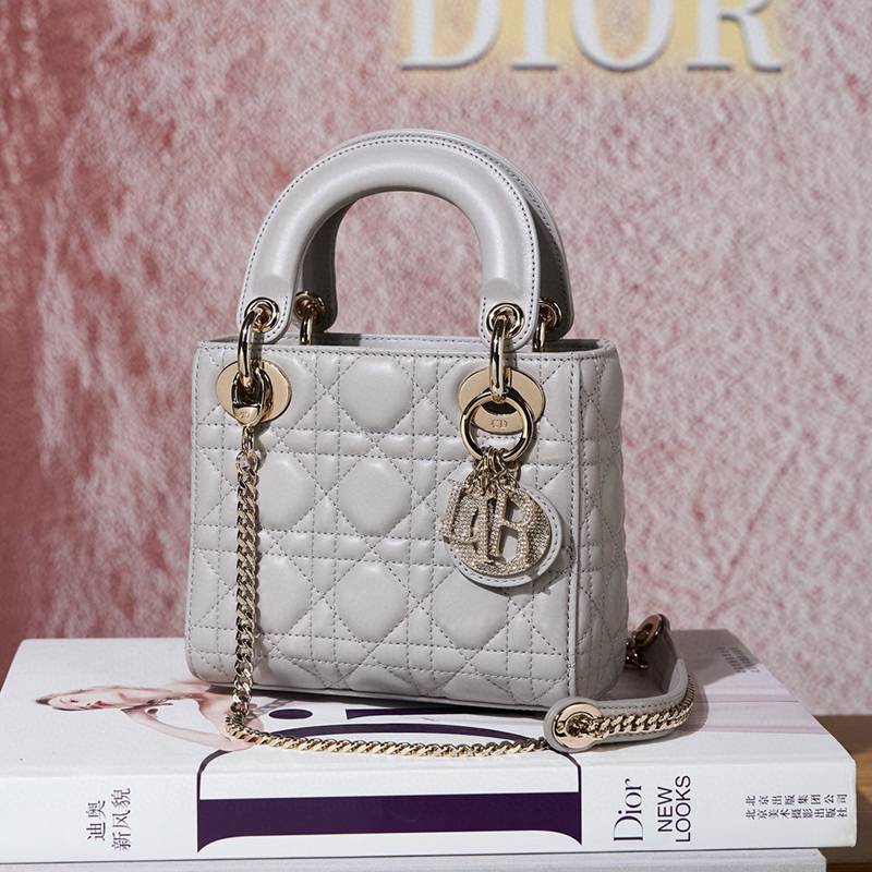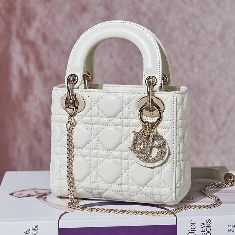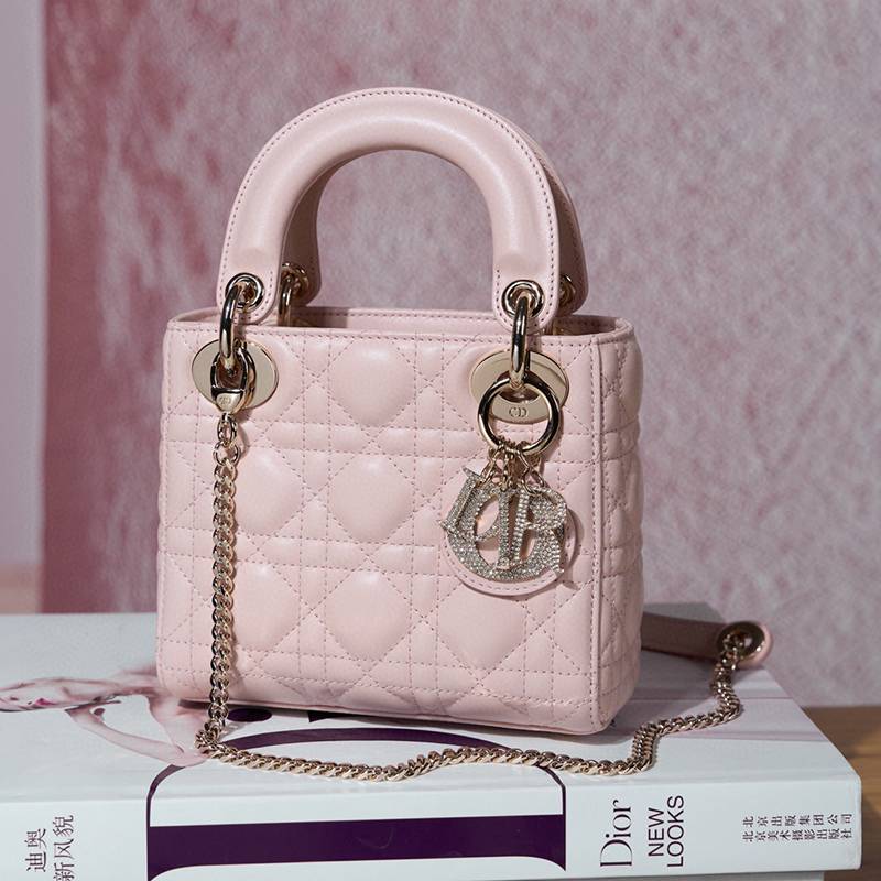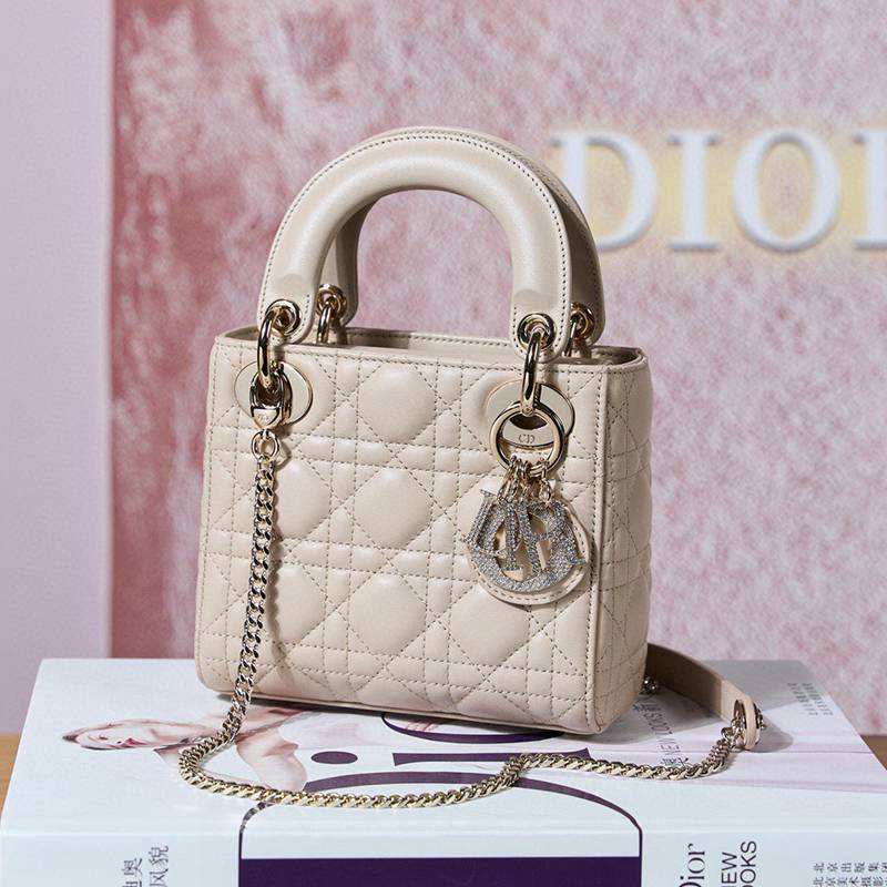 ST85307 DIOR Classic Lady Diamond Buckle Sheepskin Leather Mini Pocket Stylish and Elegant Design Durable with Light Gold Finish Diamond DIOR Pendant Highlighting Elegant Style Model M0505