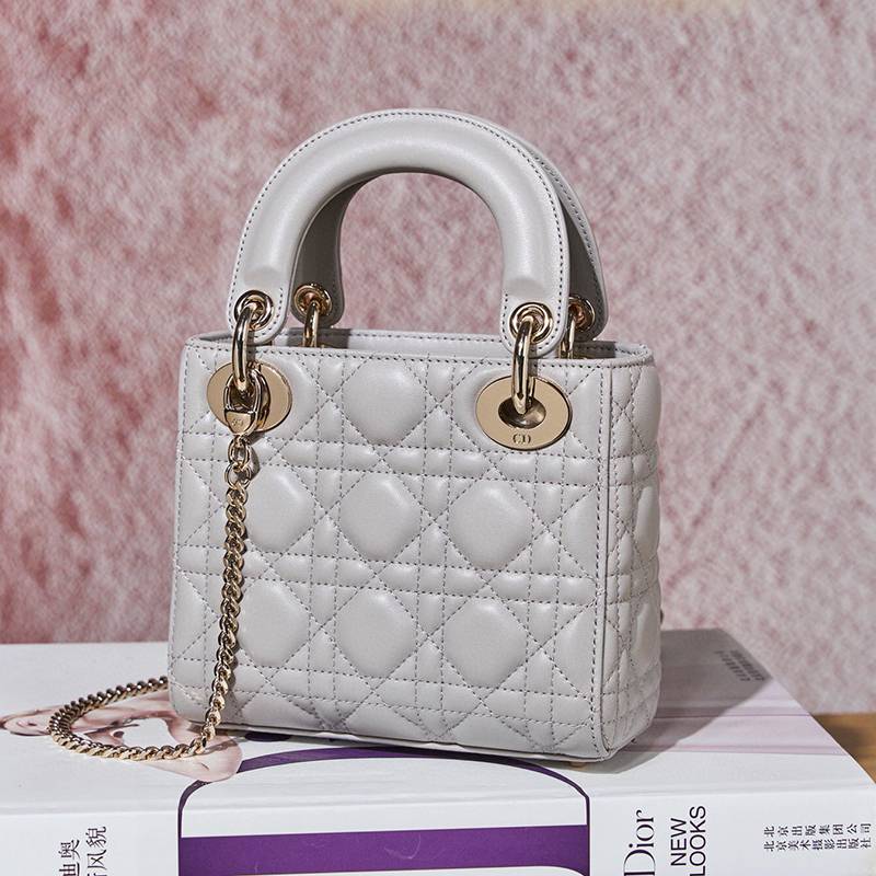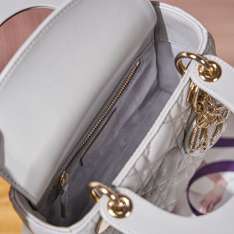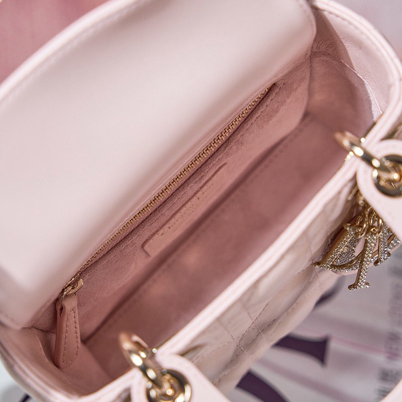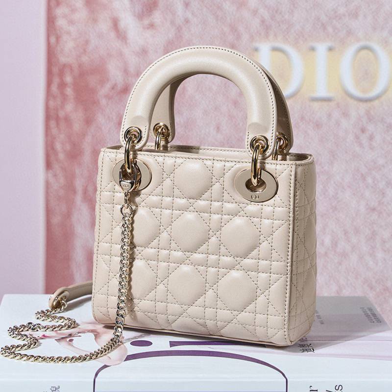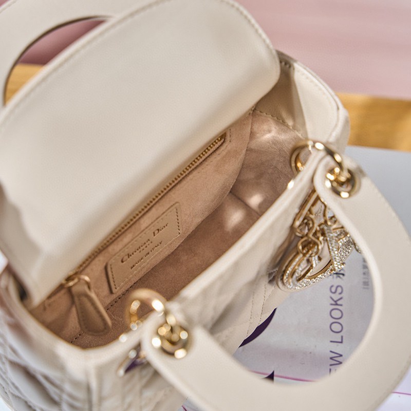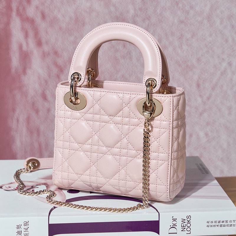 ST85307 DIOR Classic Lady Diamond Buckle Sheepskin Leather Mini Pocket Stylish and Elegant Design Durable with Light Gold Finish Diamond DIOR Pendant Highlighting Elegant Style Model M0505