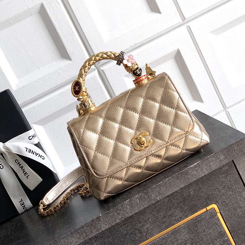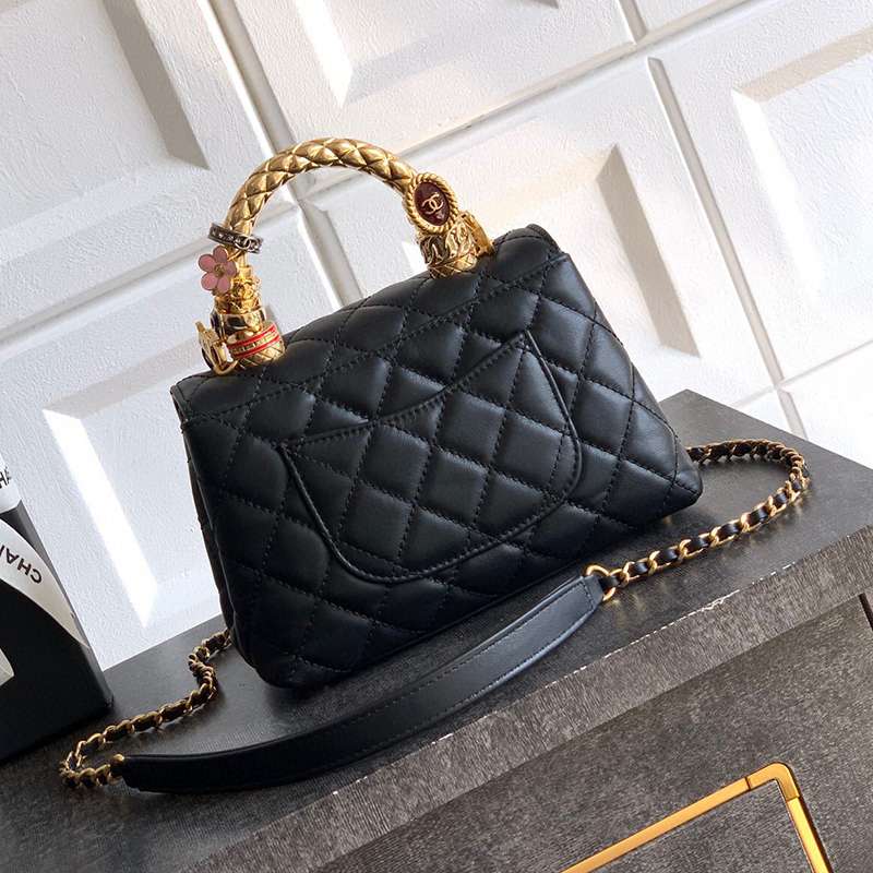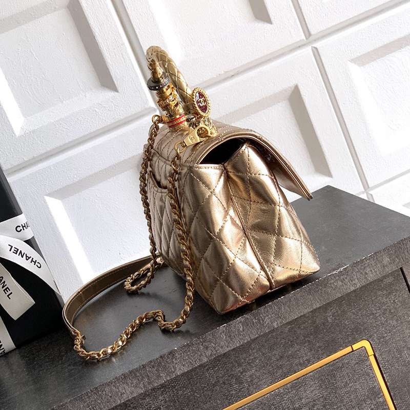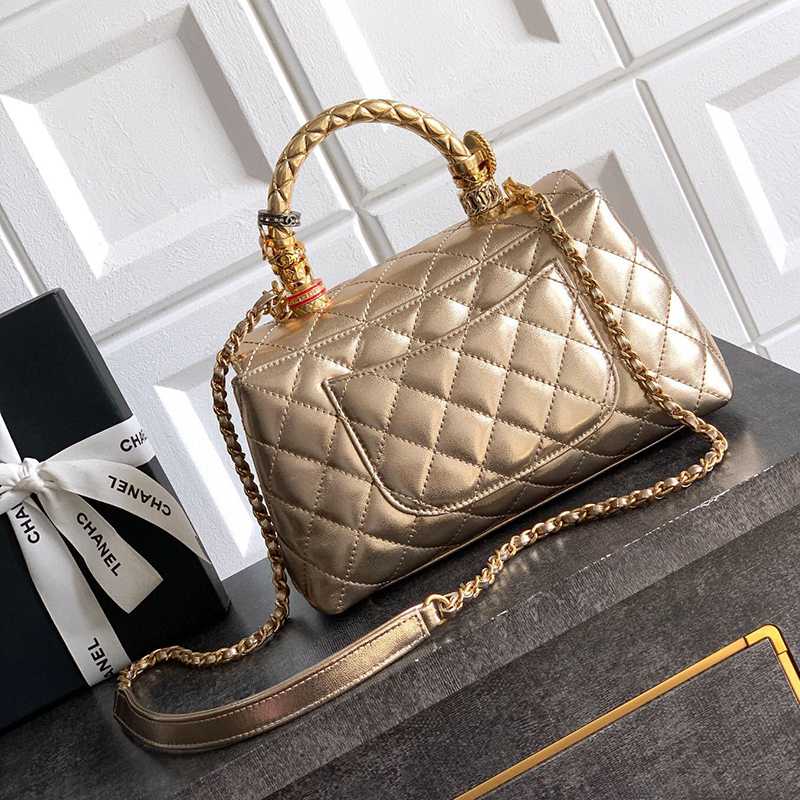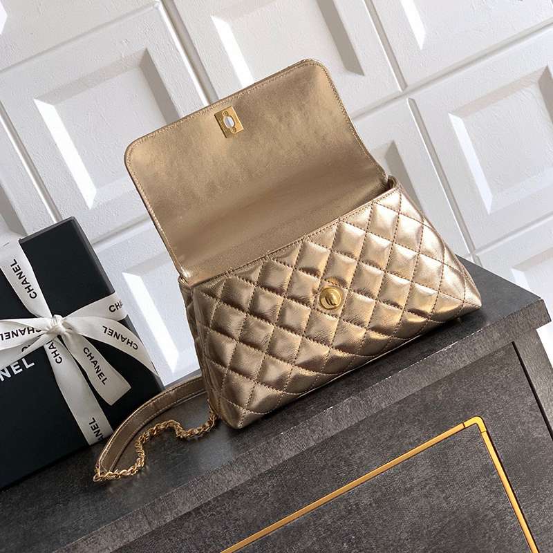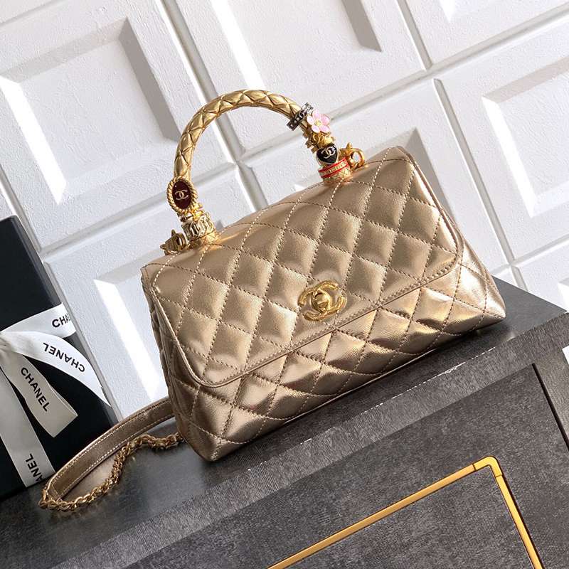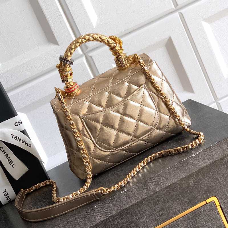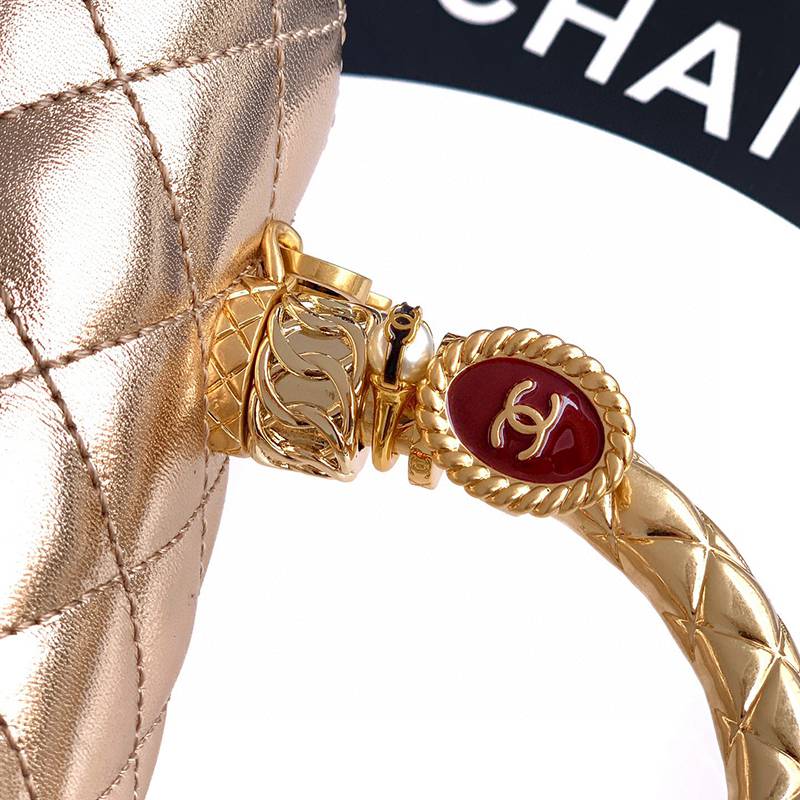 ST95442 CHANEL 25K Gold Diamond Hollow Bracelet Cocohandle Classic Crafted from Tire Leather, Pure Copper Metal with Diamond Handle