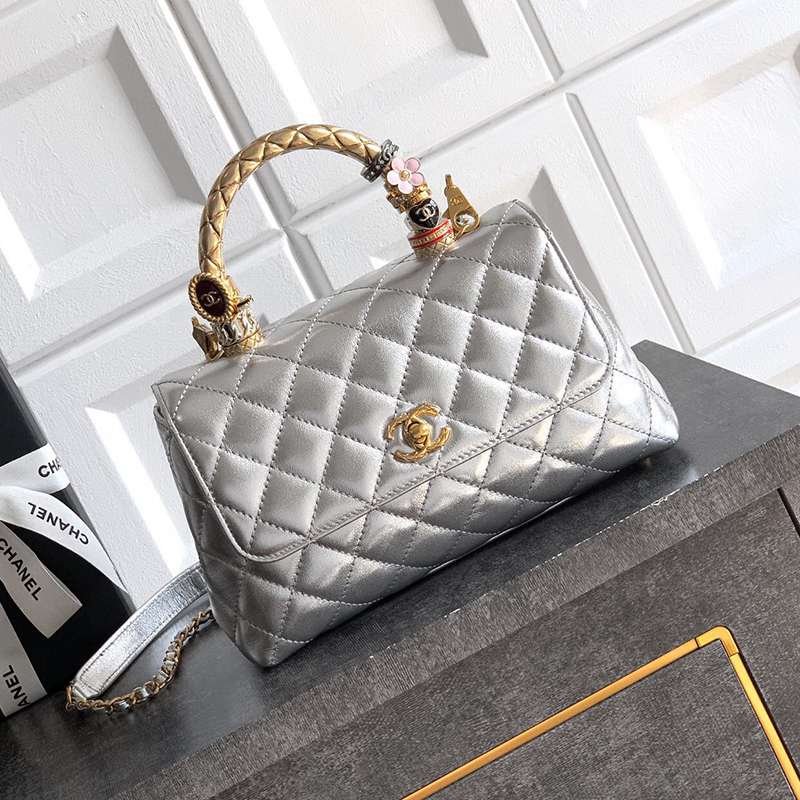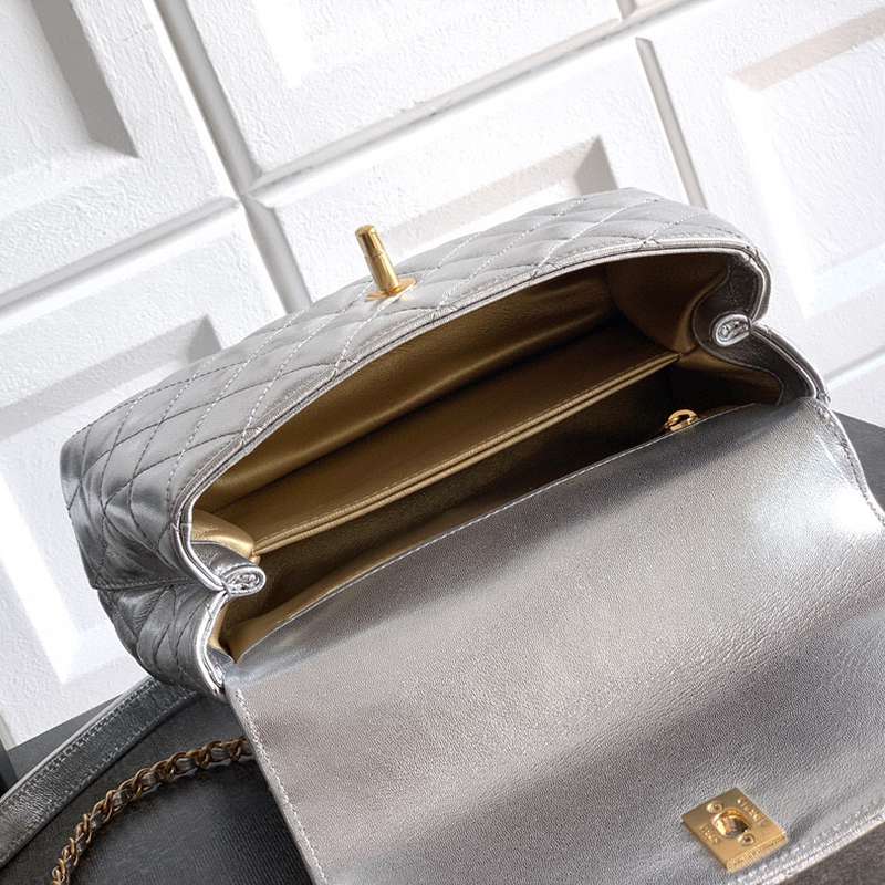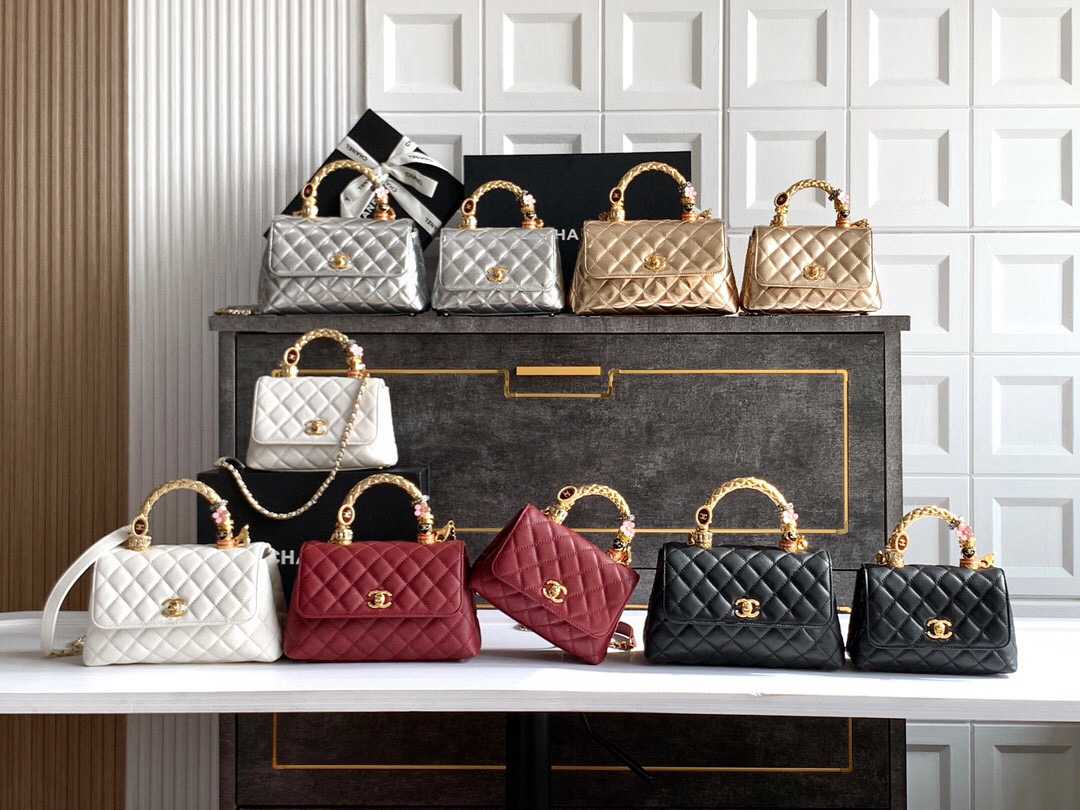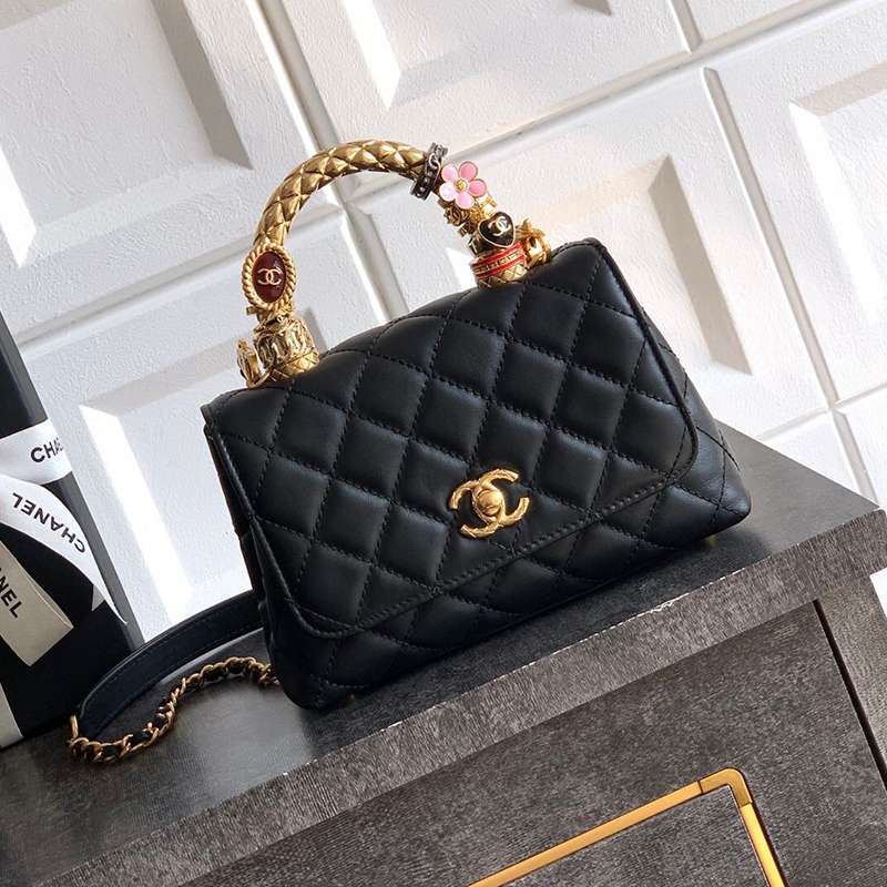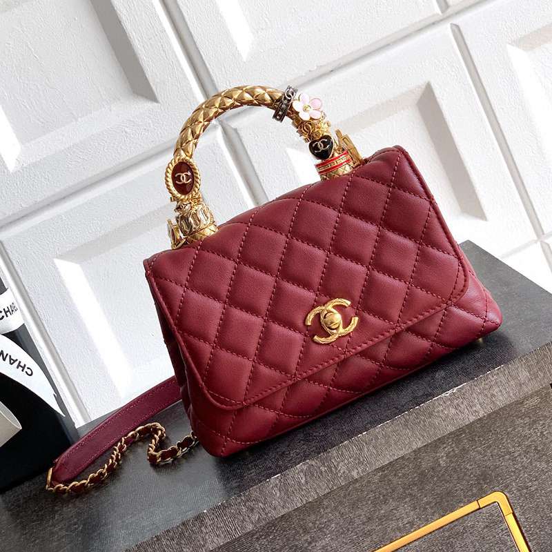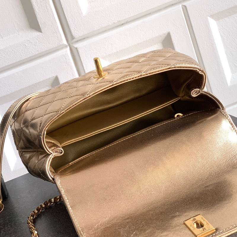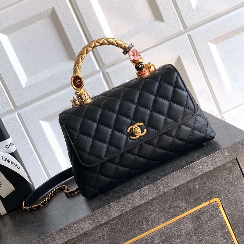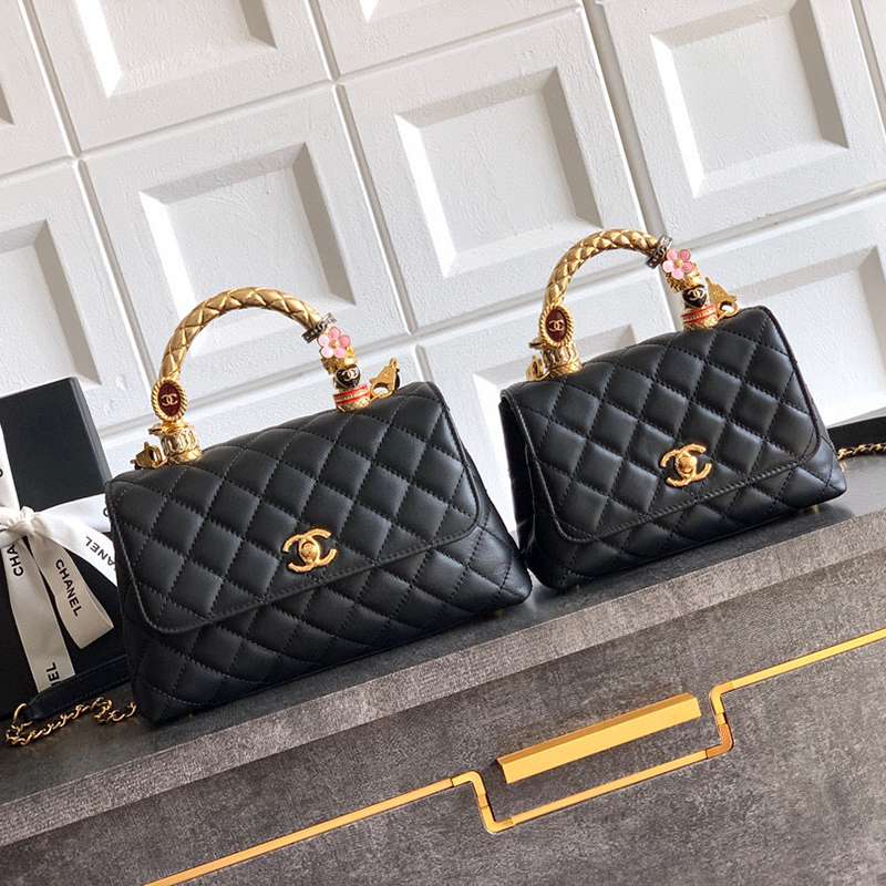ST95442 CHANEL 25K Gold Diamond Hollow Bracelet Cocohandle Classic Crafted from Tire Leather, Pure Copper Metal with Diamond Handle