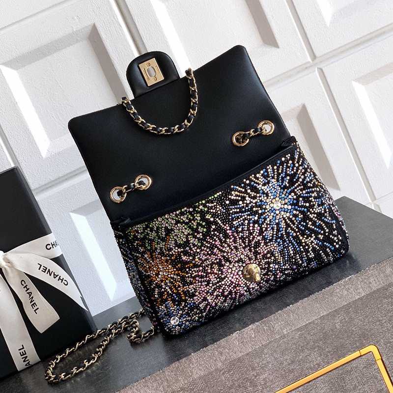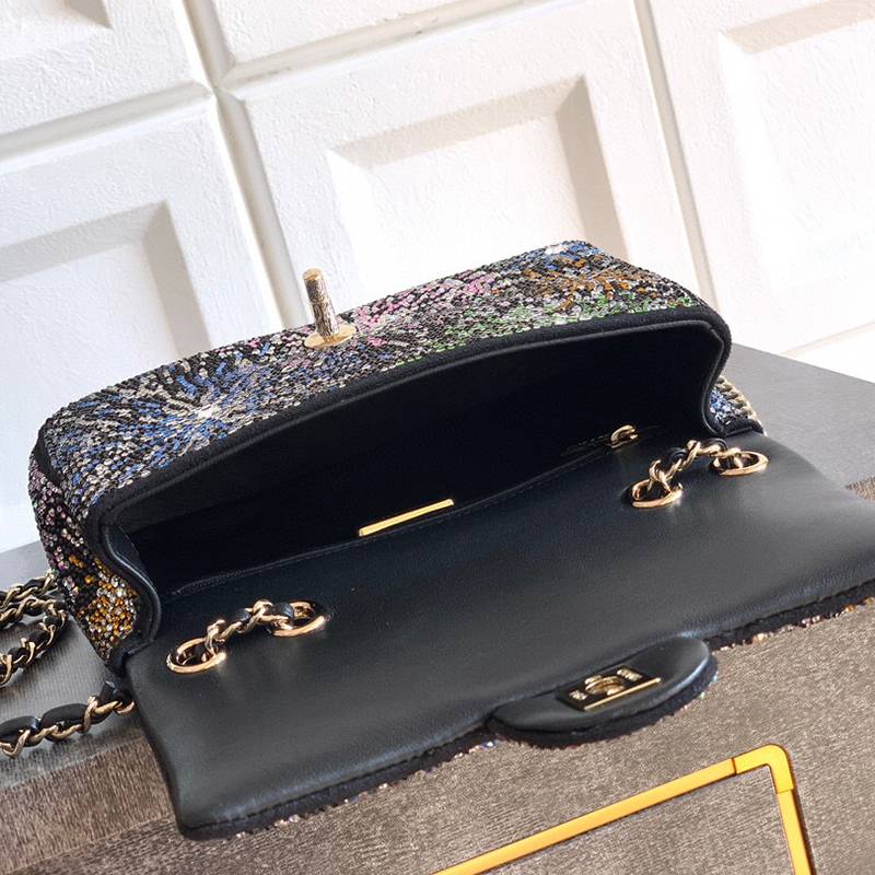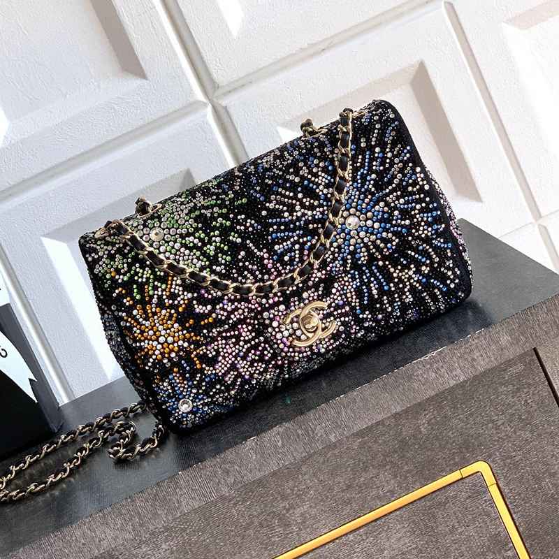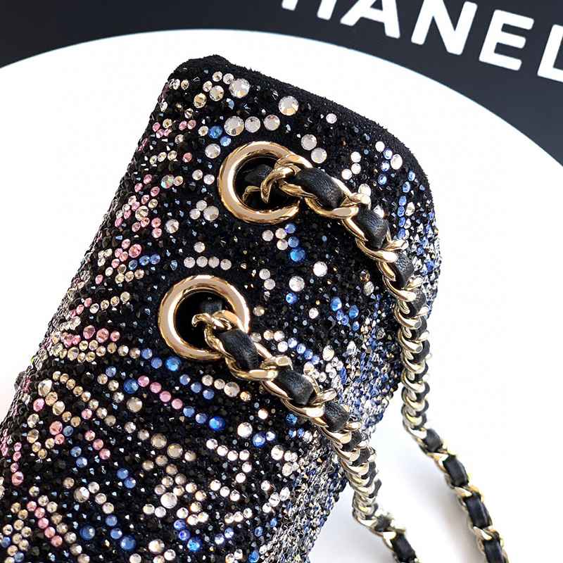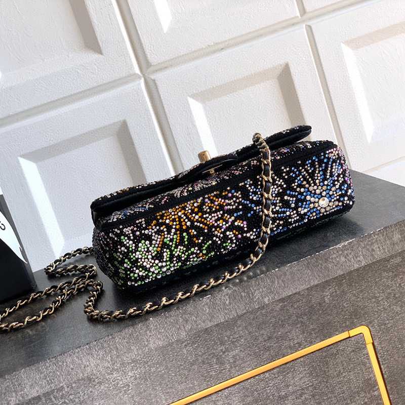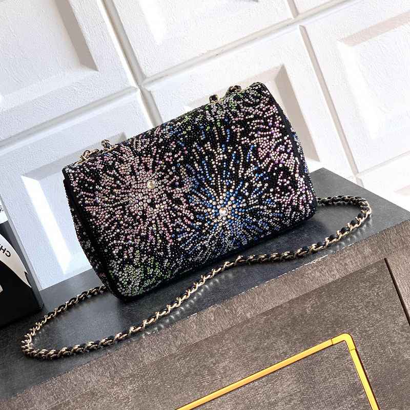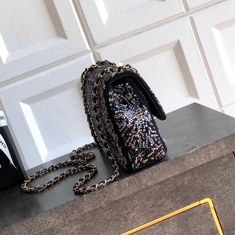 Starry Sky with Diamonds "is adorned with beautiful CHANEL dense sequins and shaped CF super sparkling diamond bags that can be pre ordered. Summer filters are available, and SO BLACK's explosive street super cool physical items are simply stunning, with a super rare explosive bead film. The most worthwhile bag to buy this season with excellent cost performance ratio. The combination of colorful sequins and sparkling charm greatly enhances its charm, elegant temperament, and fashionable trend. It is also suitable as a dinner bag, a bag that can be cherished for a lifetime, 20cm