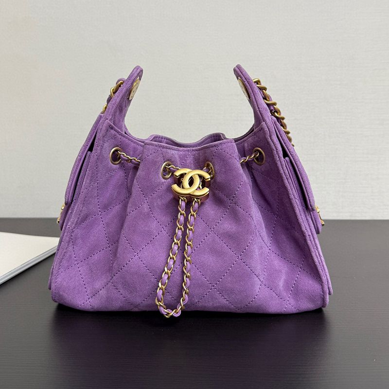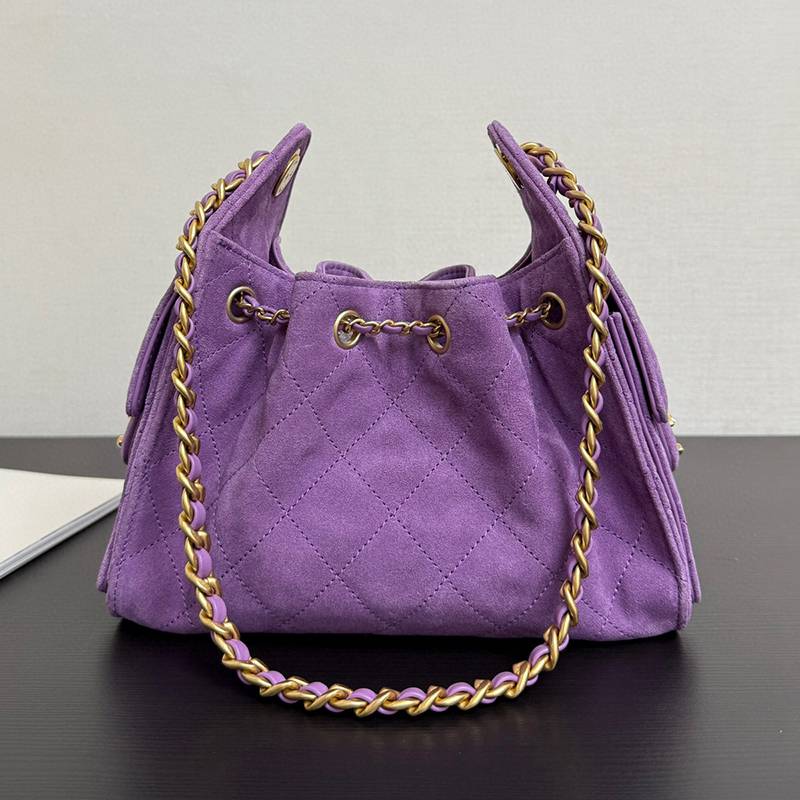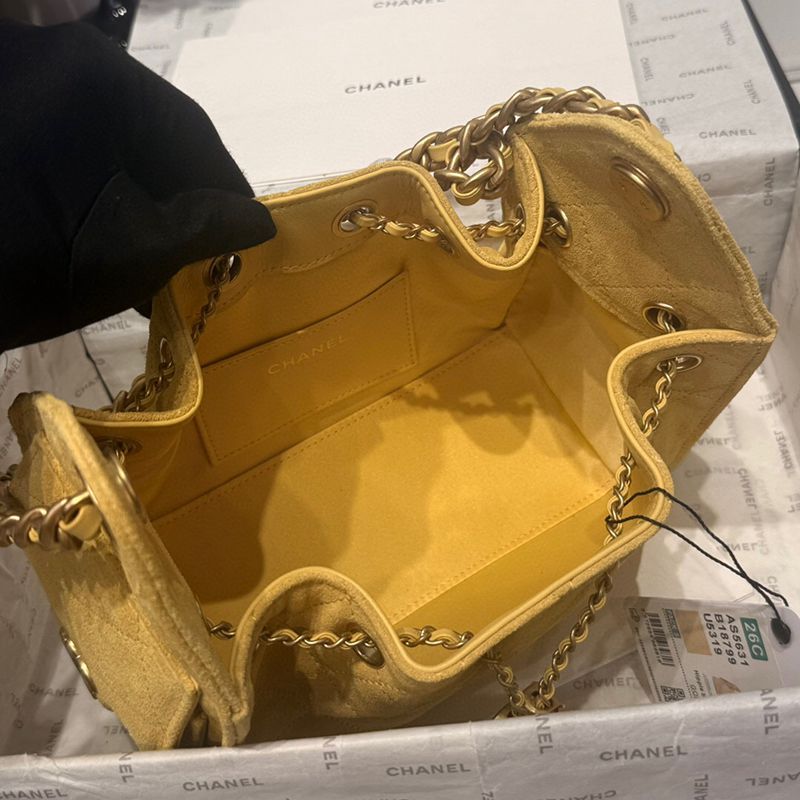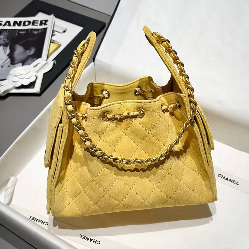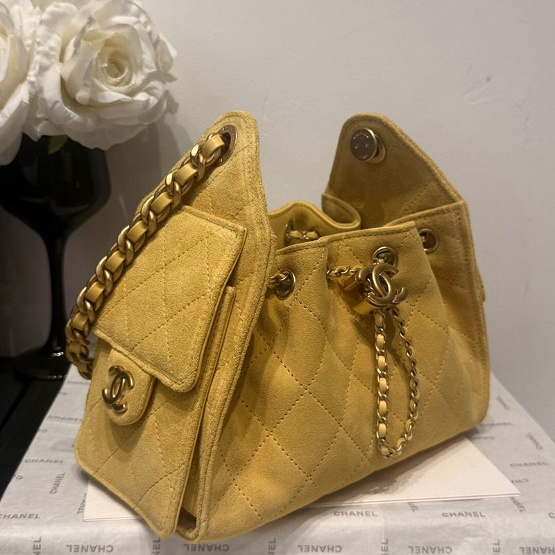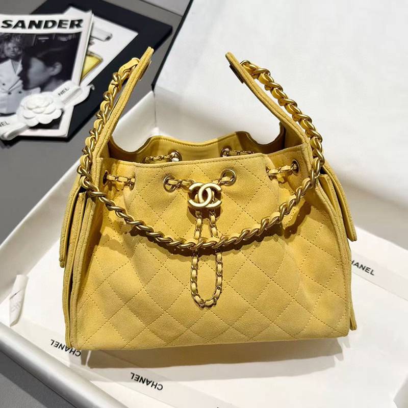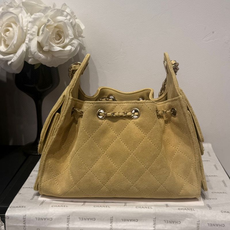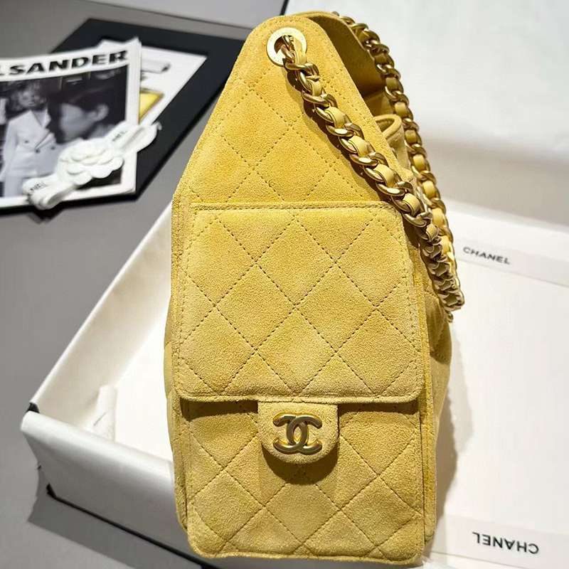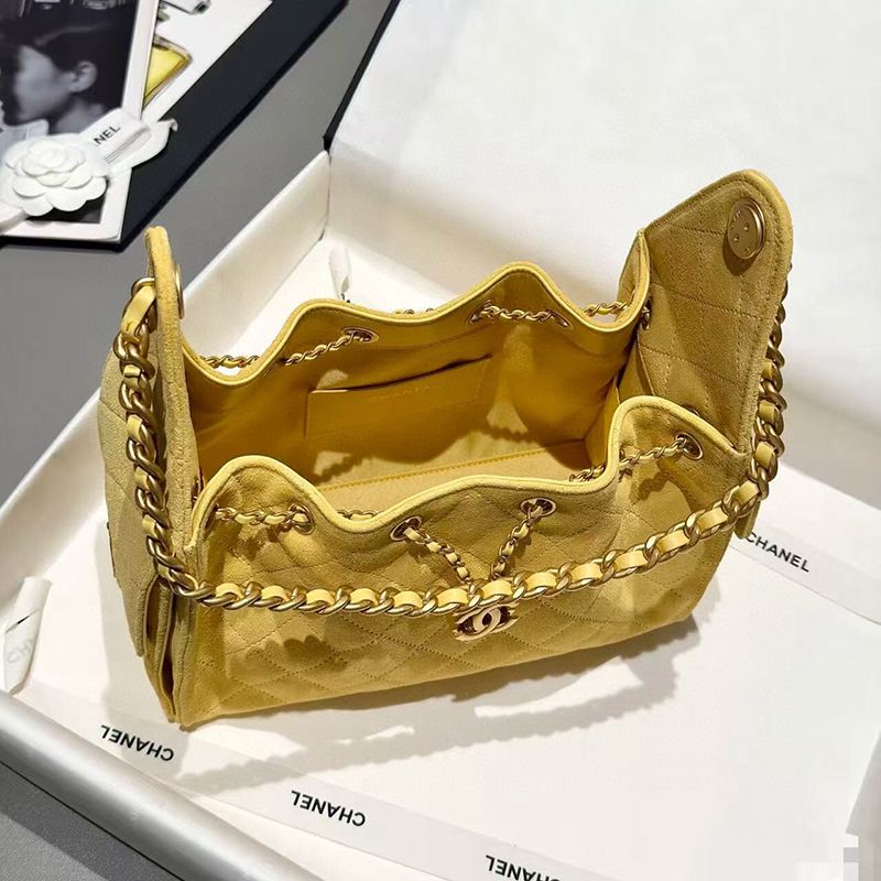 ST67724 CHANEL 26C Hobo Pop Mini Hippie Bag Light Yellow Deer Skin Underarm Bag Soft Matte Leather Retro Handbag AS5631