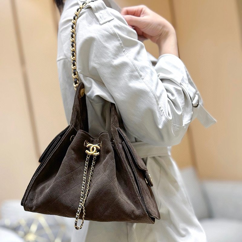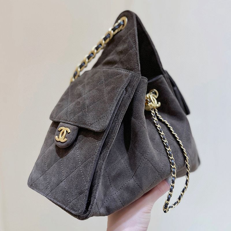 ST76358 CHANEL 25K premium ready to wear series large capacity armpit bag, original factory genuine suede deer skin pattern cowhide