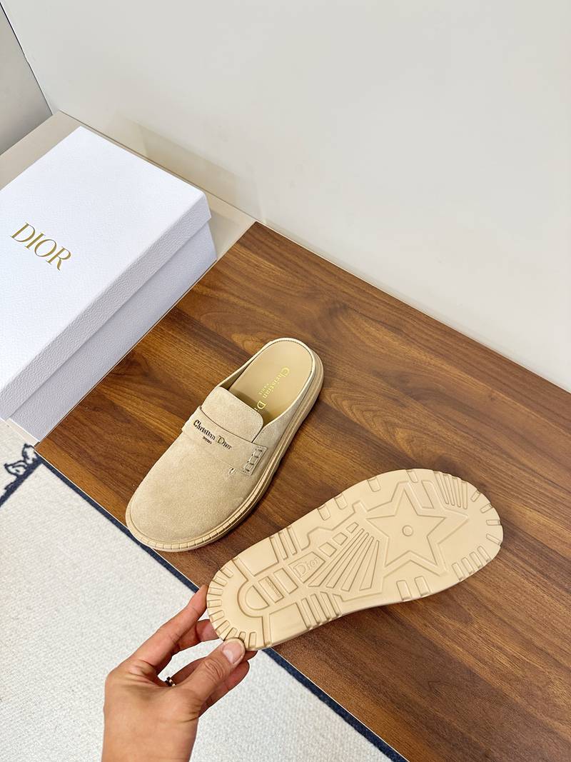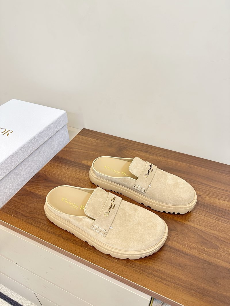 The 2026 early spring series suede Muller slippers are made of soft suede material, with a low-key and versatile khaki color. The metal "Christian Dior" logo on the upper is highly recognizable. Thick bottom design, comfortable and fashionable to wear, easy to handle for daily commuting or leisure. No backstop design, easy to put on and take off, simple and elegant style, perfect for pairing with pants or skirts in autumn and winter. High end fashion items, quality and