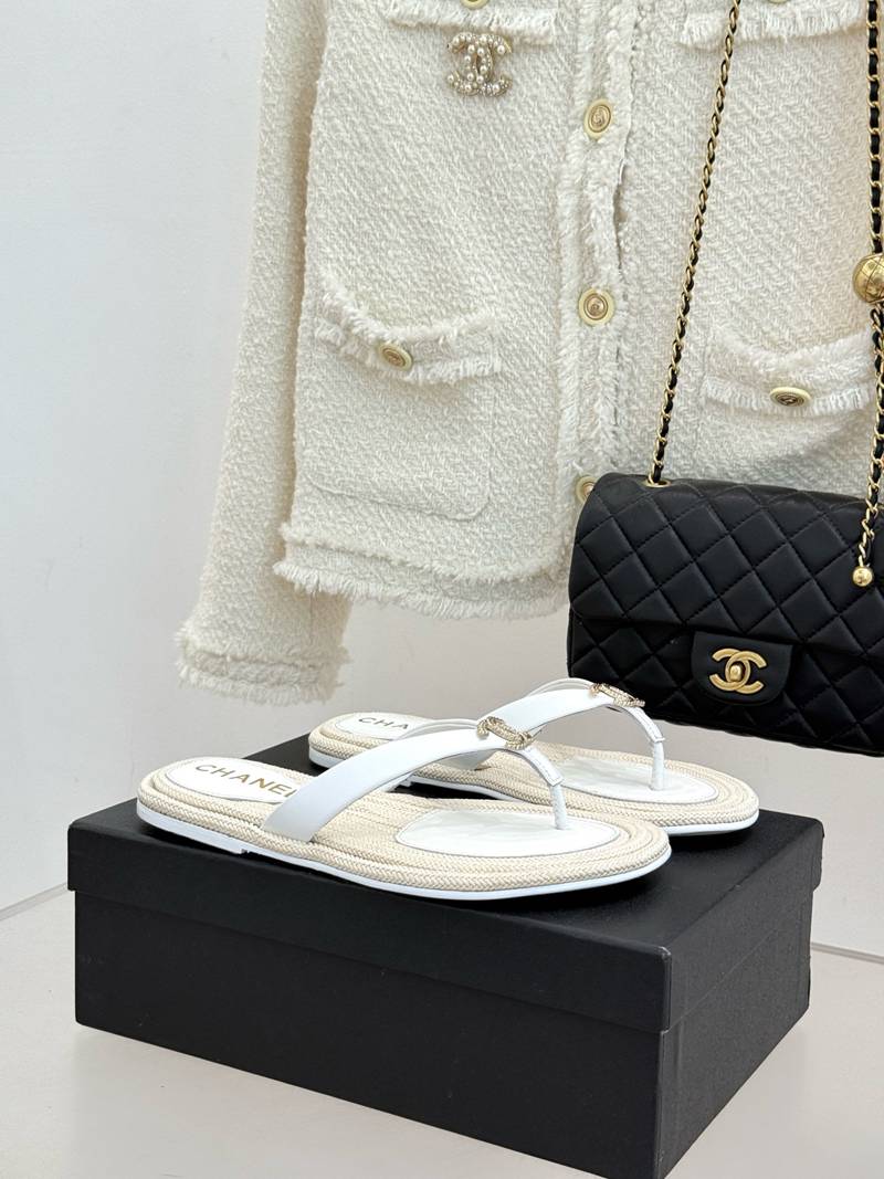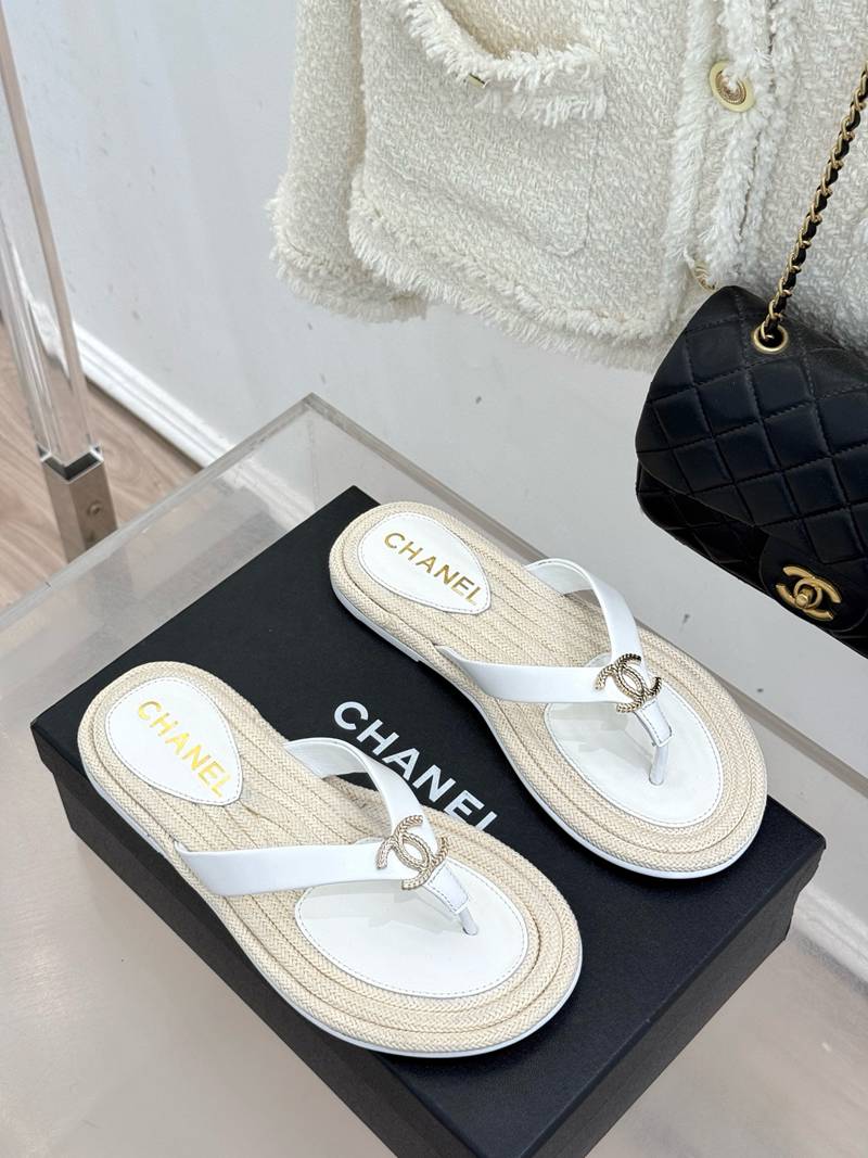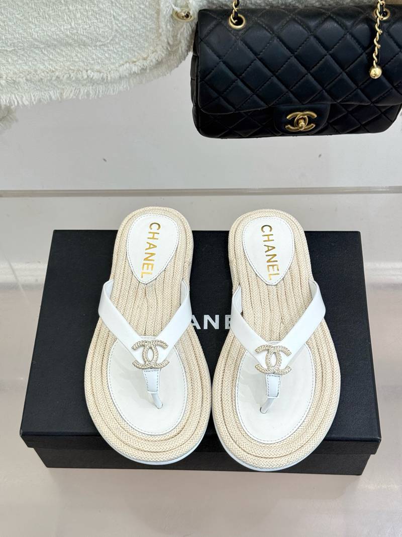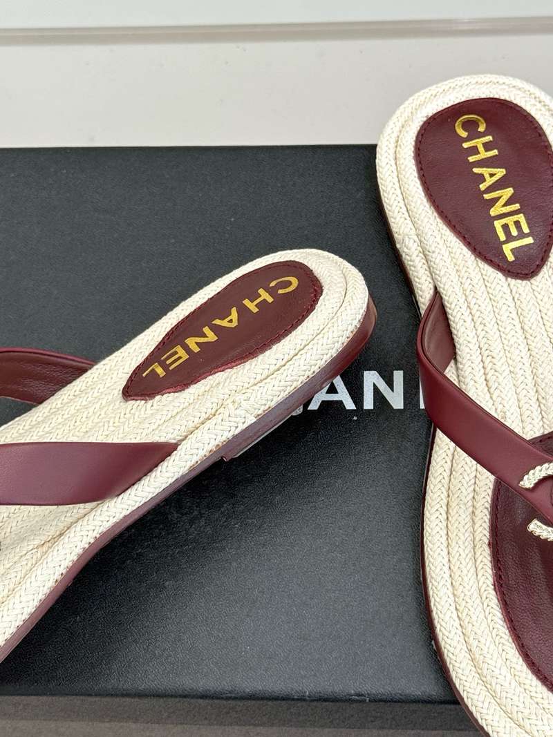 ST35138 CHANEL New handmade stitching natural hemp rope bottom double C-clip flip flops for vacation anti slip large bottom slippers