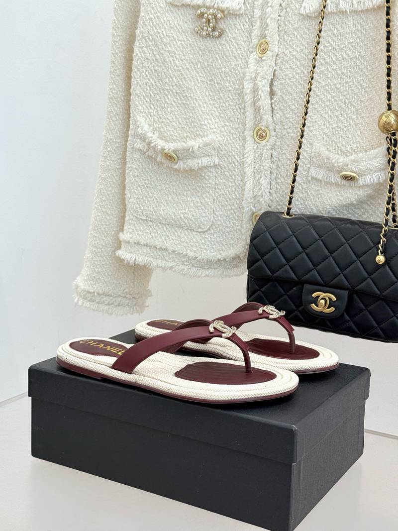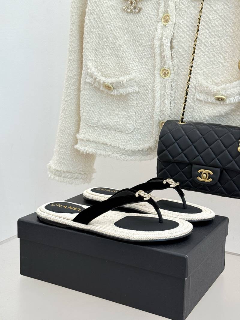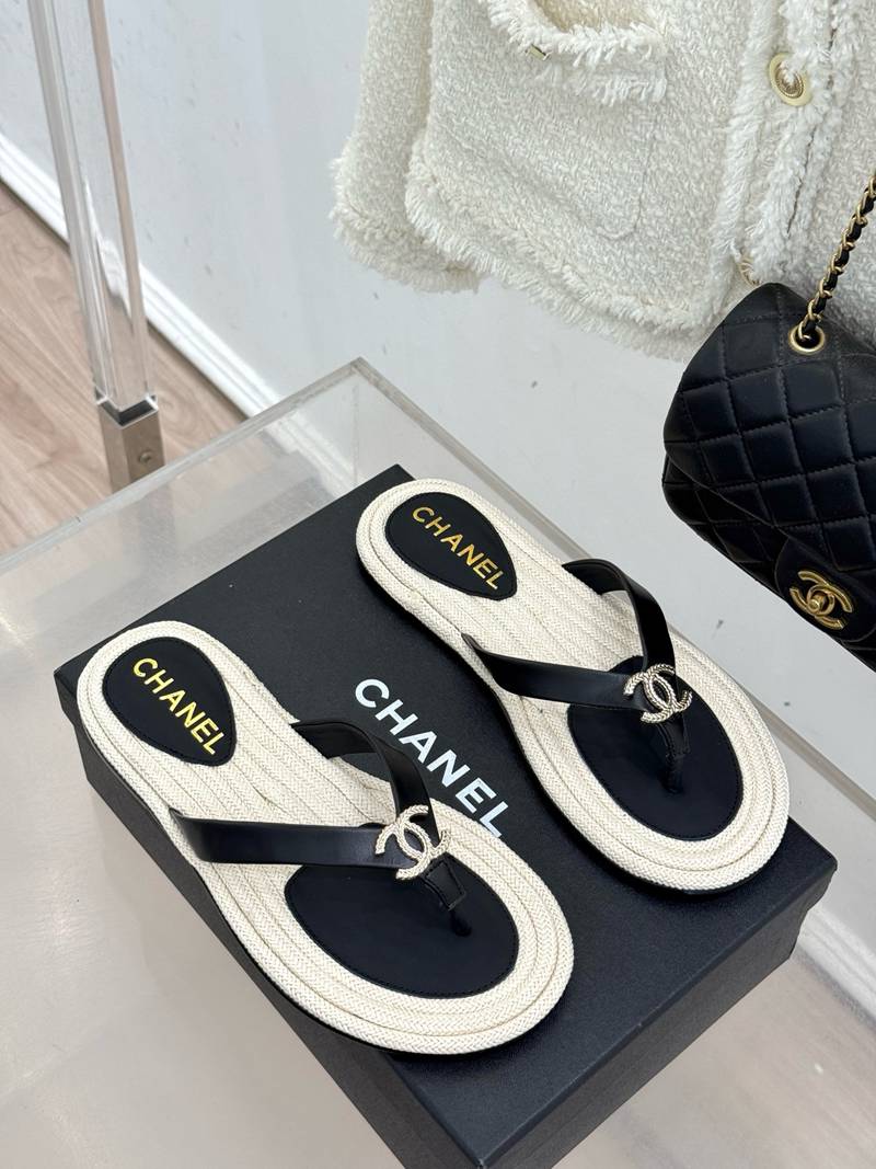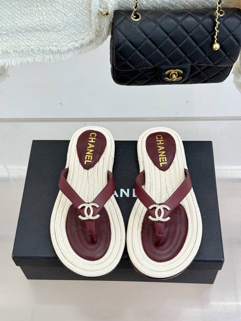 ST35138 CHANEL New handmade stitching natural hemp rope bottom double C-clip flip flops for vacation anti slip large bottom slippers