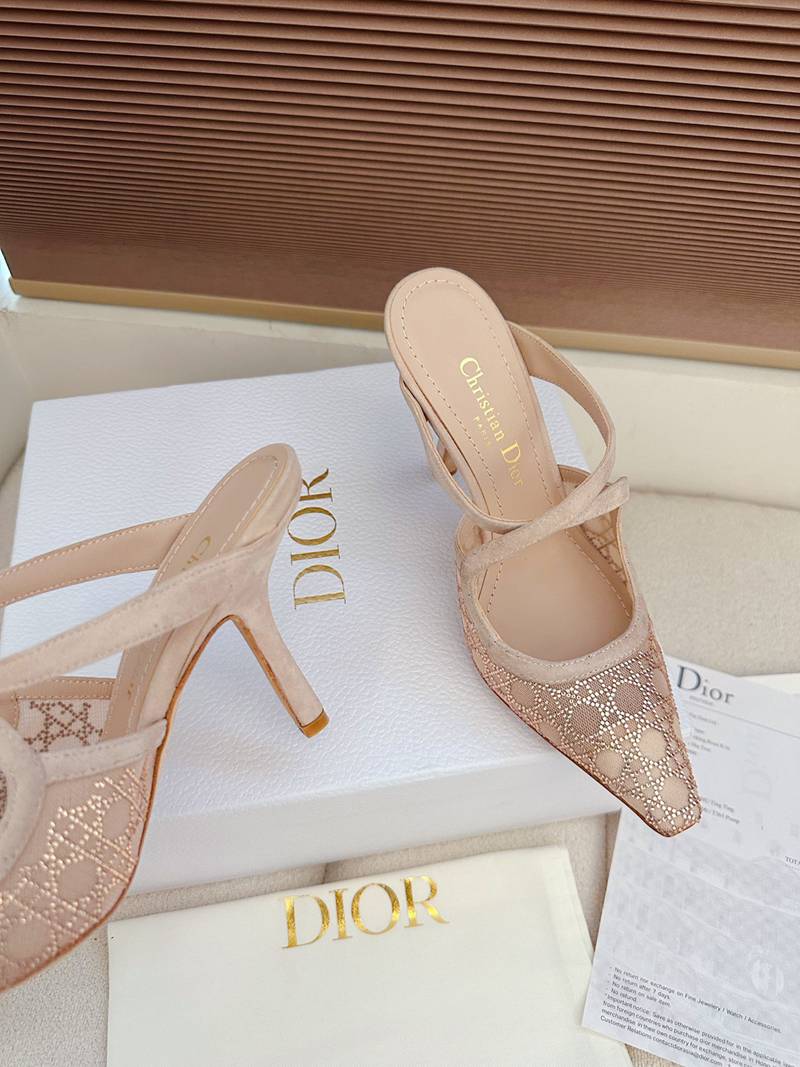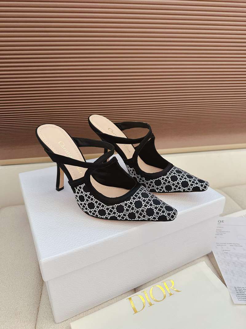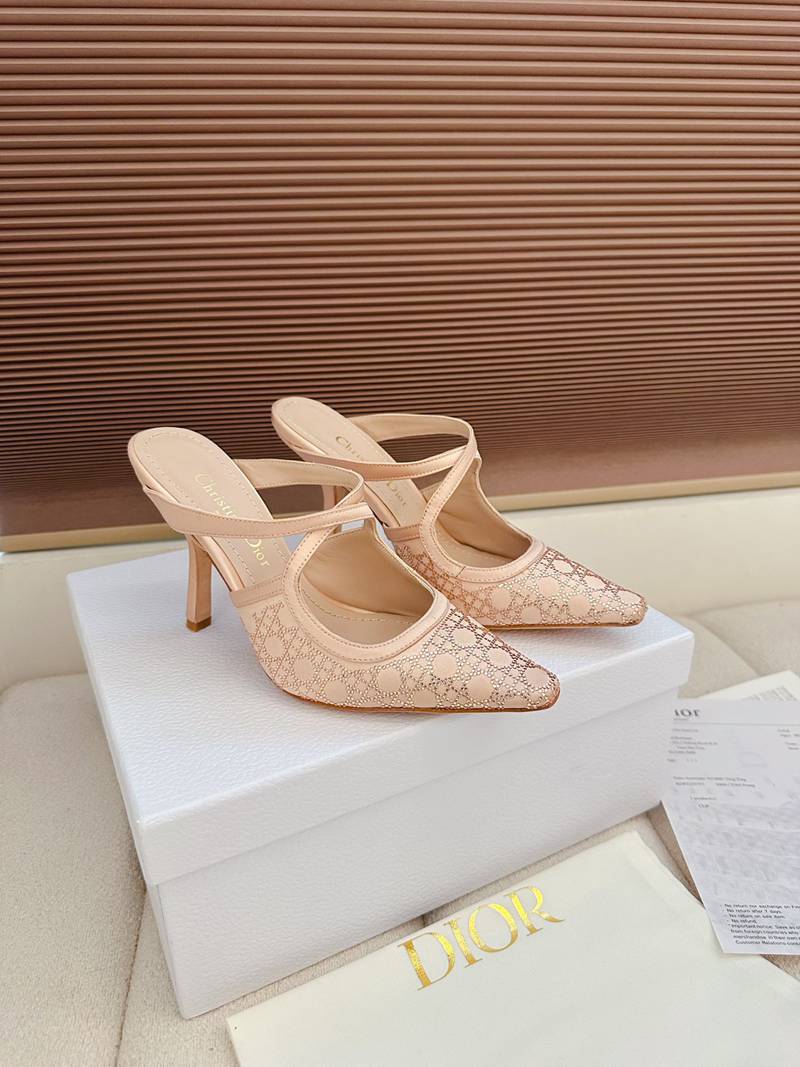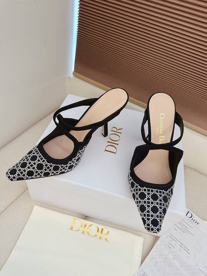 J'ADIOR woven back empty sandals Dior wholesale. Spring and Summer Latest Colors Quake Oblique Jacquard Embroidery Letter Logo High Heels Bow Color blocked Women's Shoes Top End Version in the Market Material: High temperature water-soluble embroidery technology fabric+sheepskin lining+Italian leather outsole