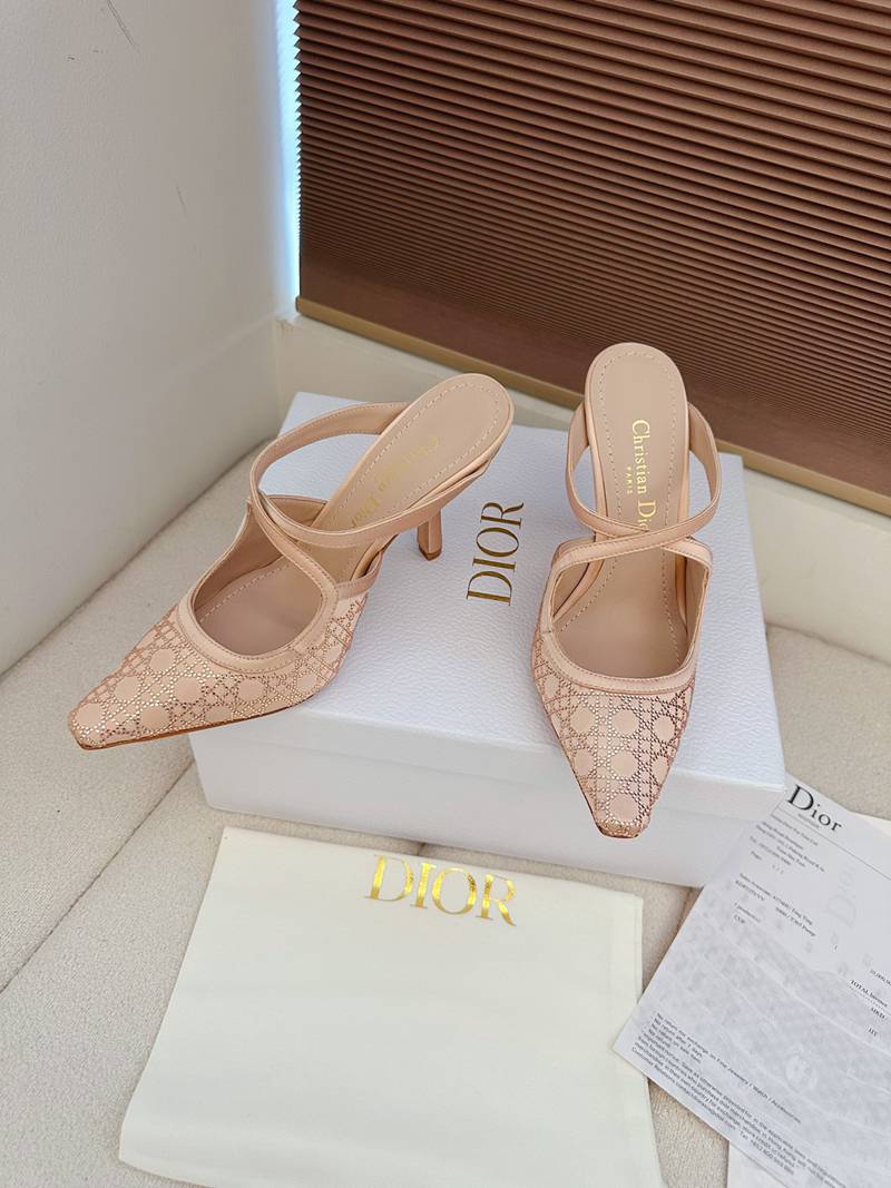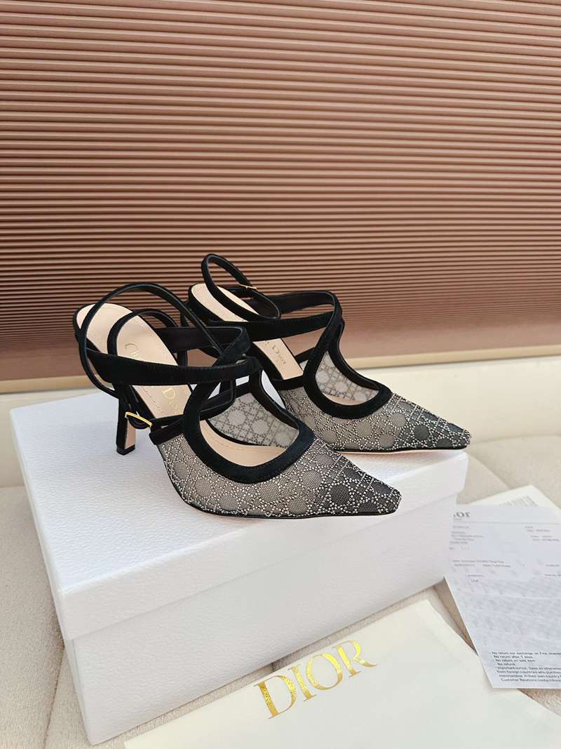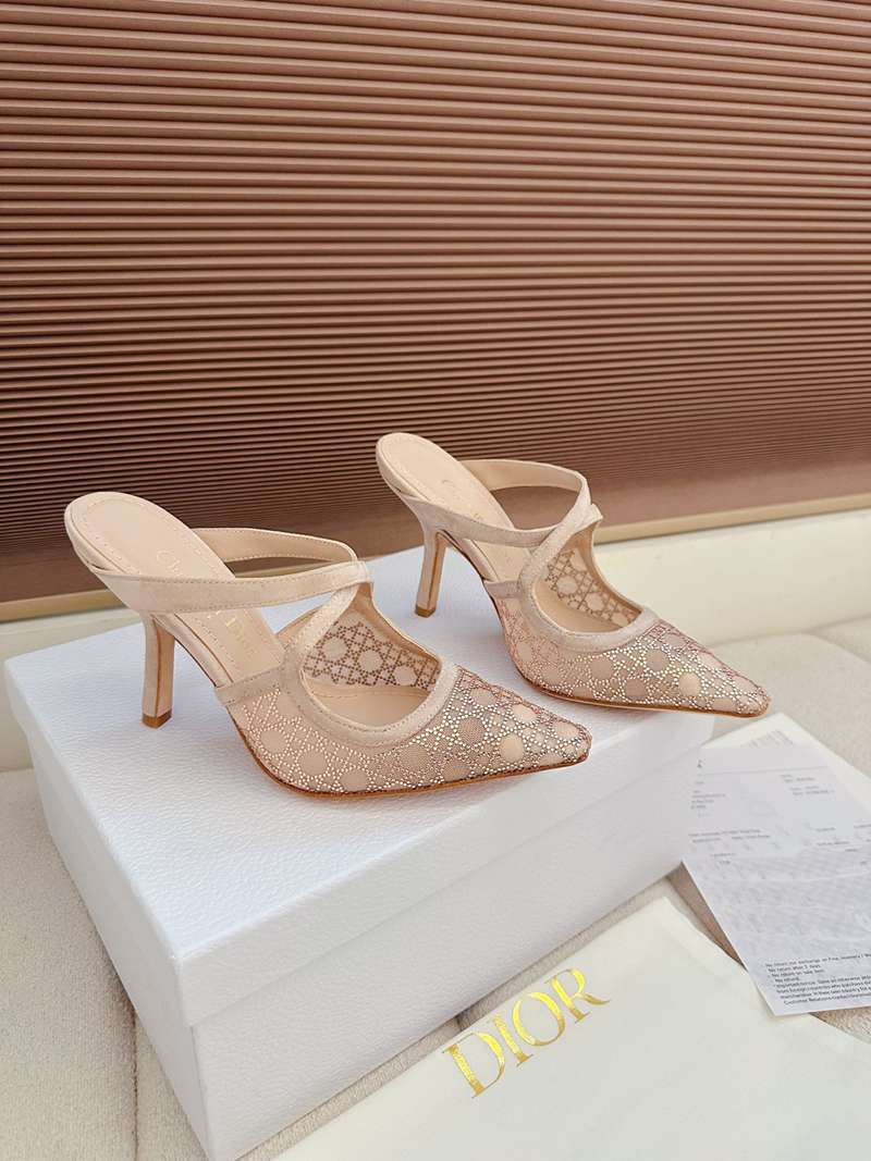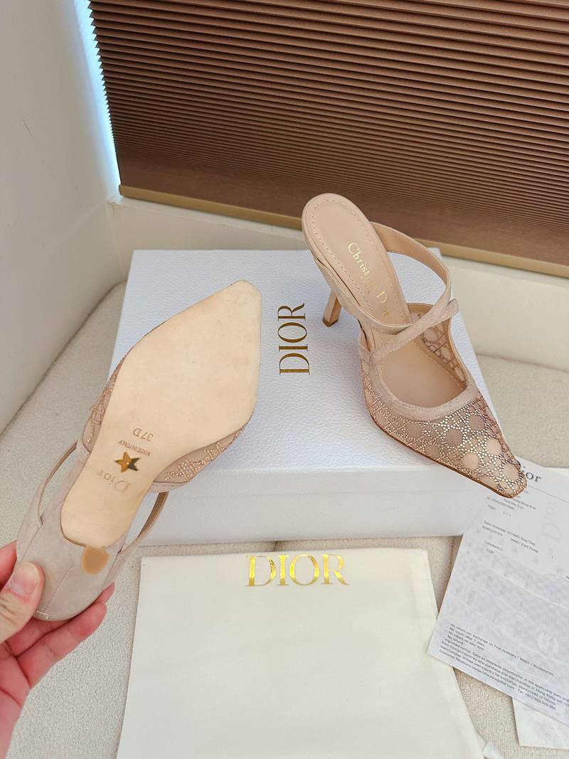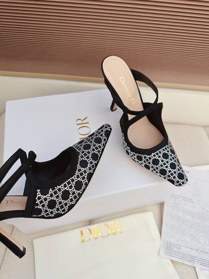 J'ADIOR woven back empty sandals Dior wholesale. Spring and Summer Latest Colors Quake Oblique Jacquard Embroidery Letter Logo High Heels Bow Color blocked Women's Shoes Top End Version in the Market Material: High temperature water-soluble embroidery technology fabric+sheepskin lining+Italian leather outsole