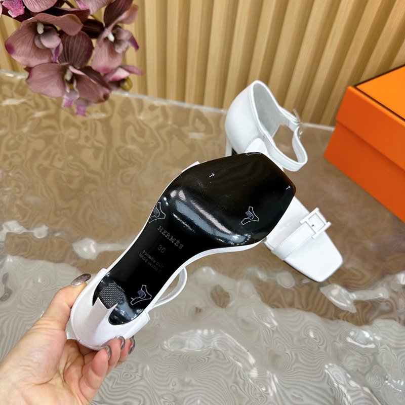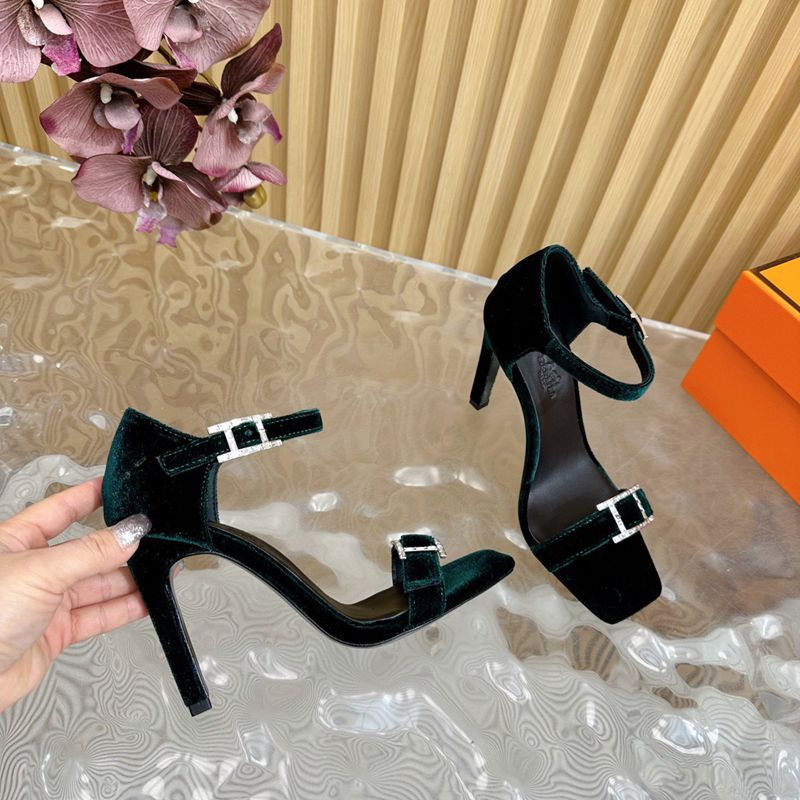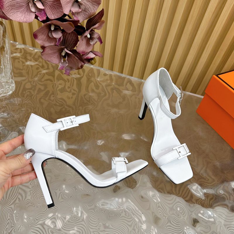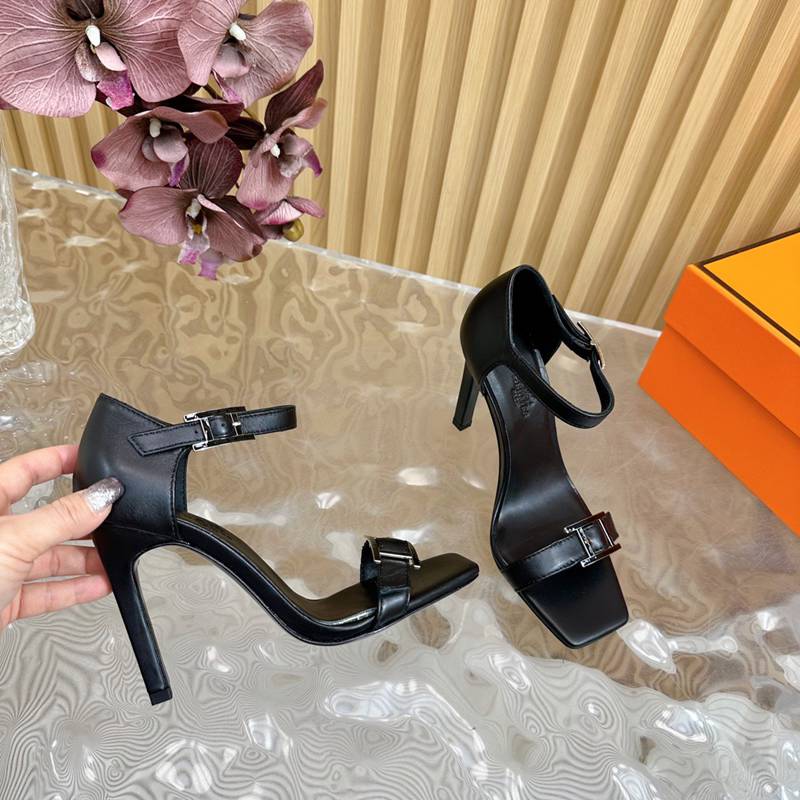 ST02745 Hermes Fashionable and versatile high-heeled sandals with square toe buckle and thin heel leather sandals luxurious and exquisite appearance