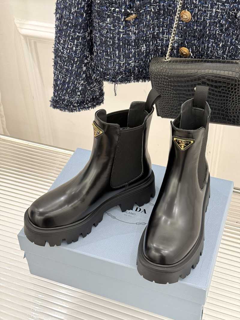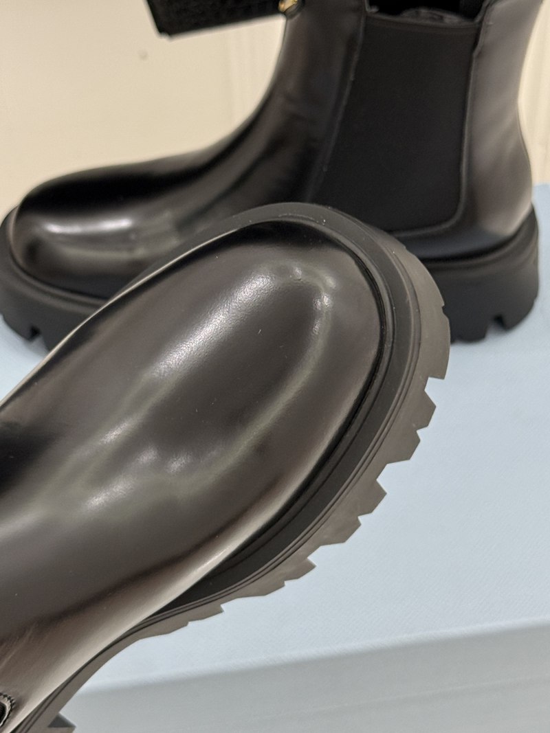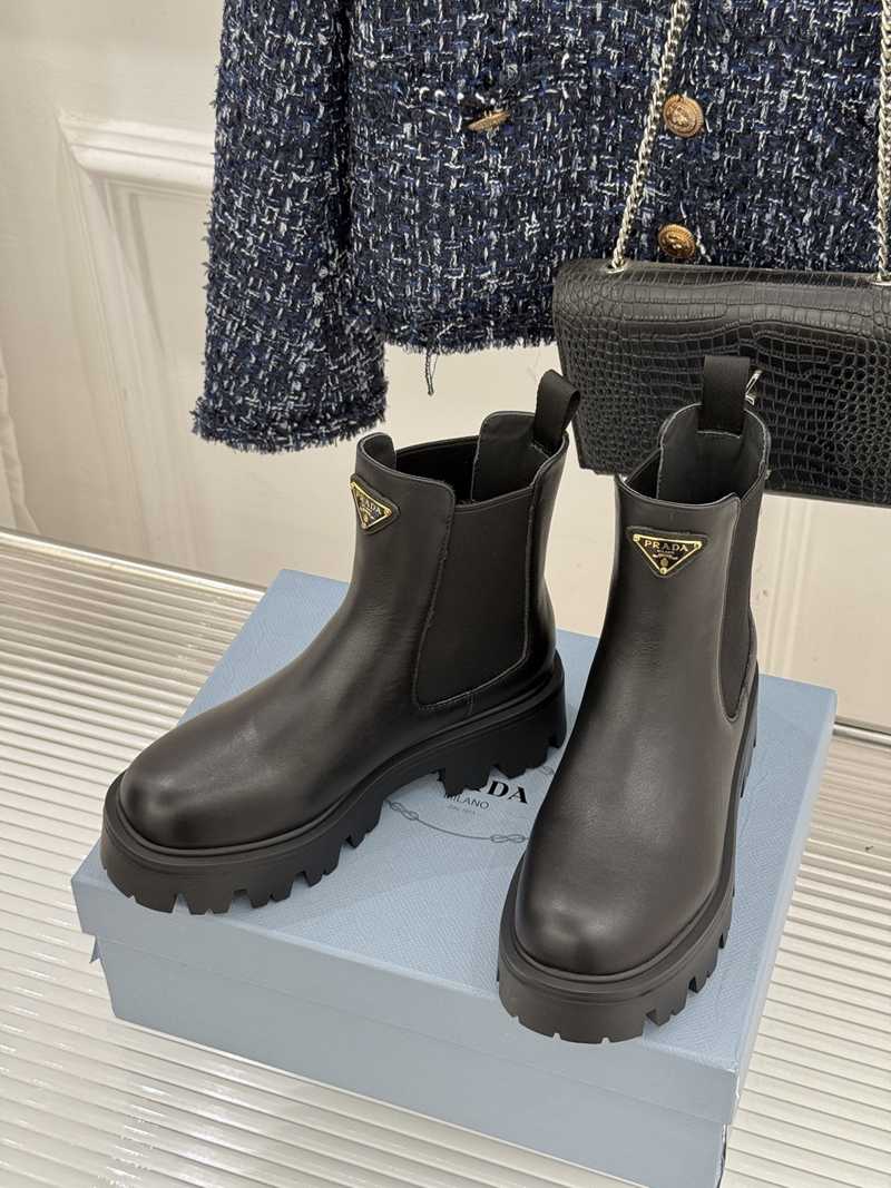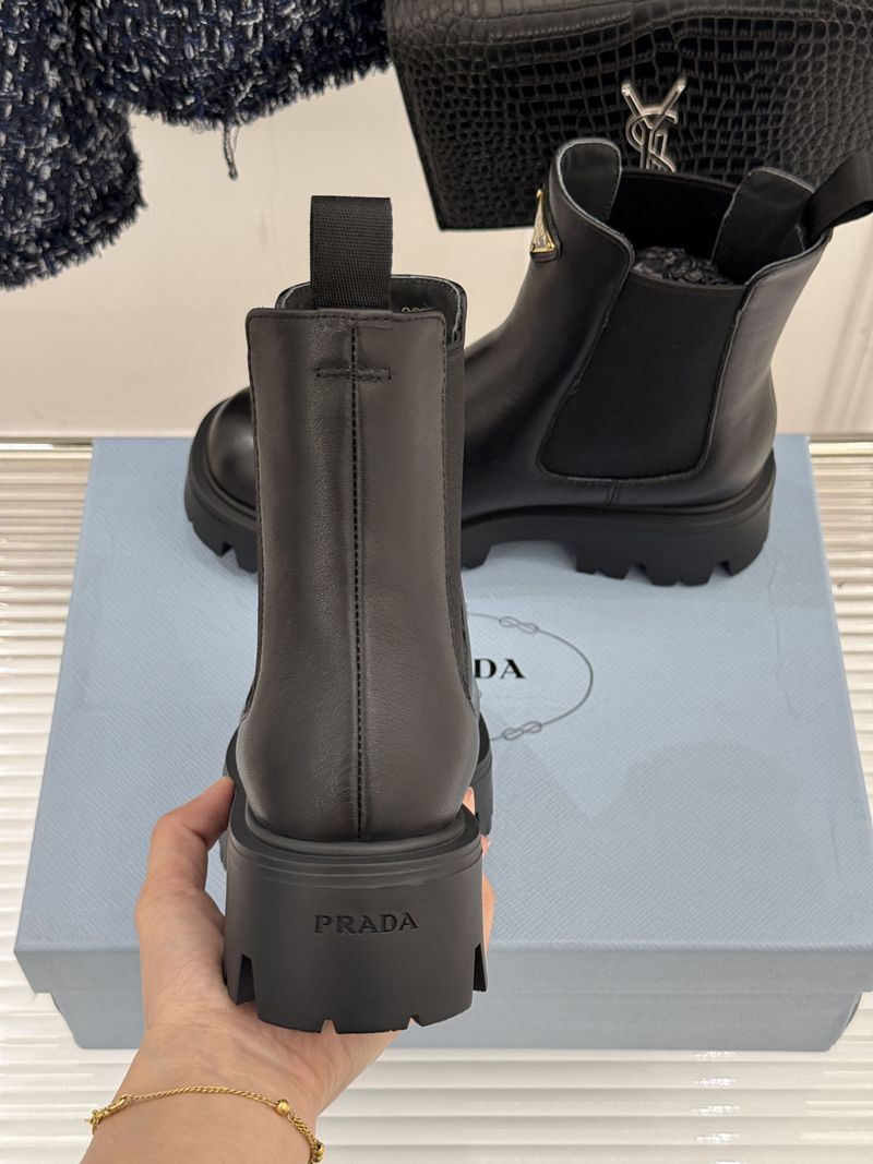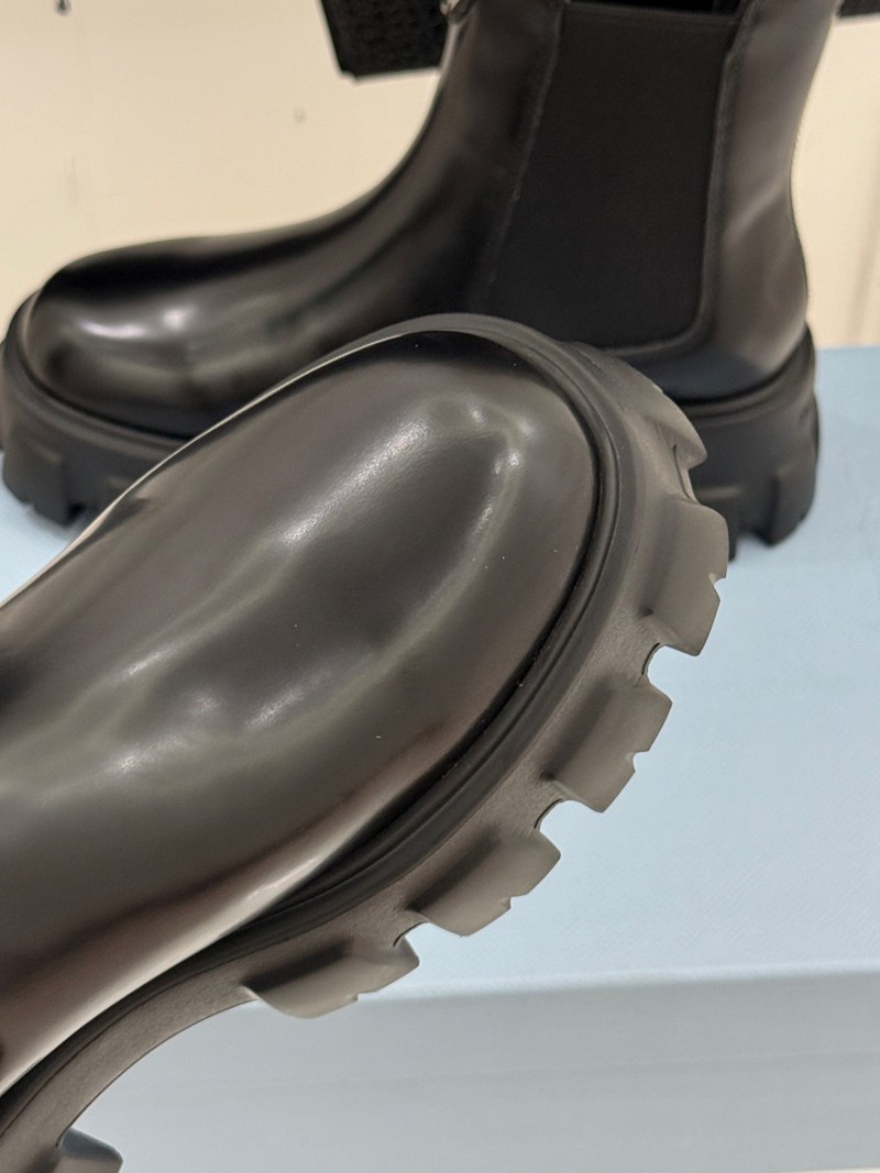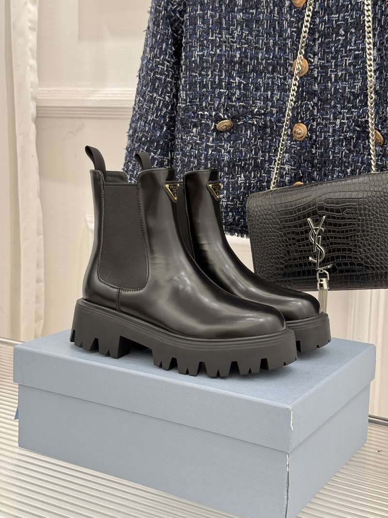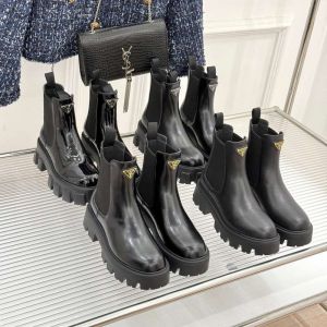 ST11585 prada Winter women's motorcycle boots, fashionable and high-quality, classic triangle logo thick soled short boots