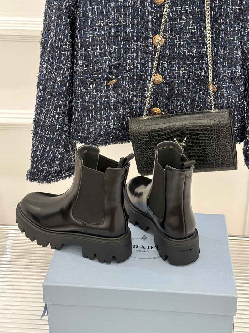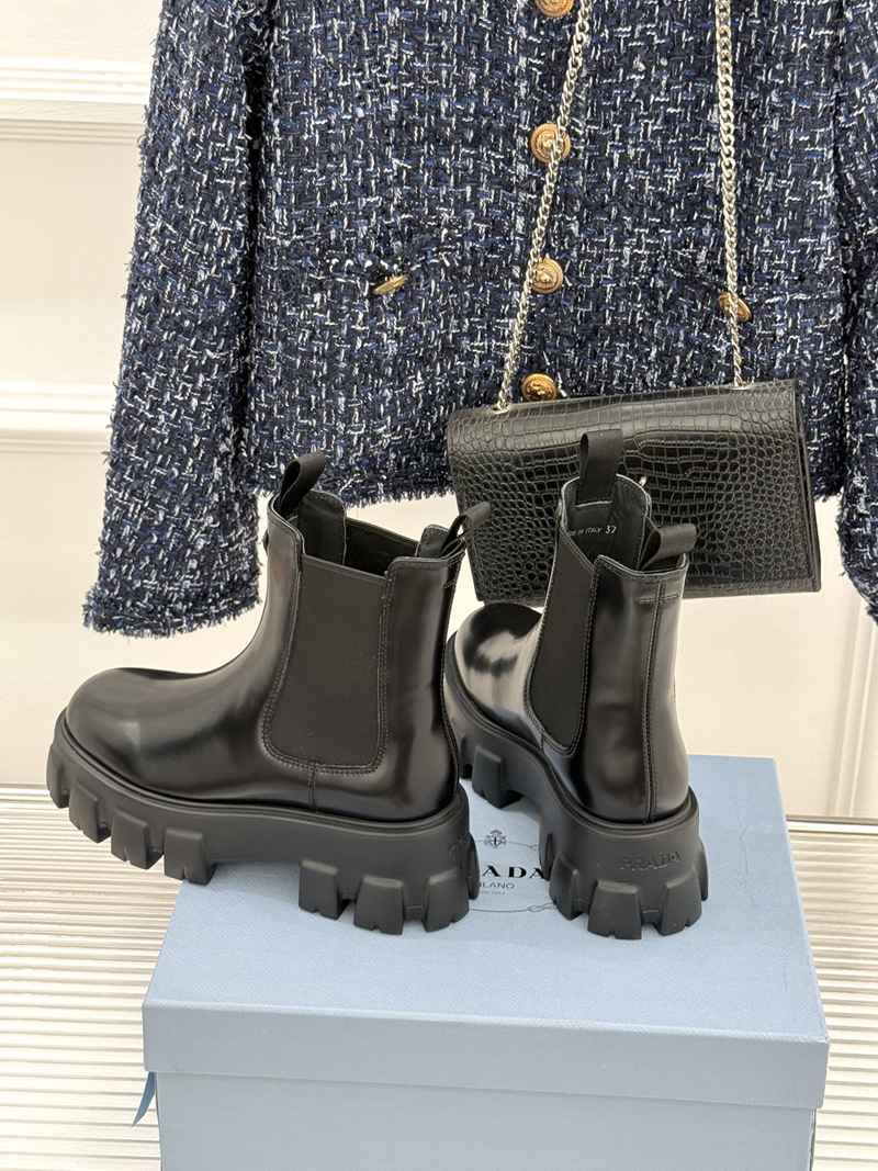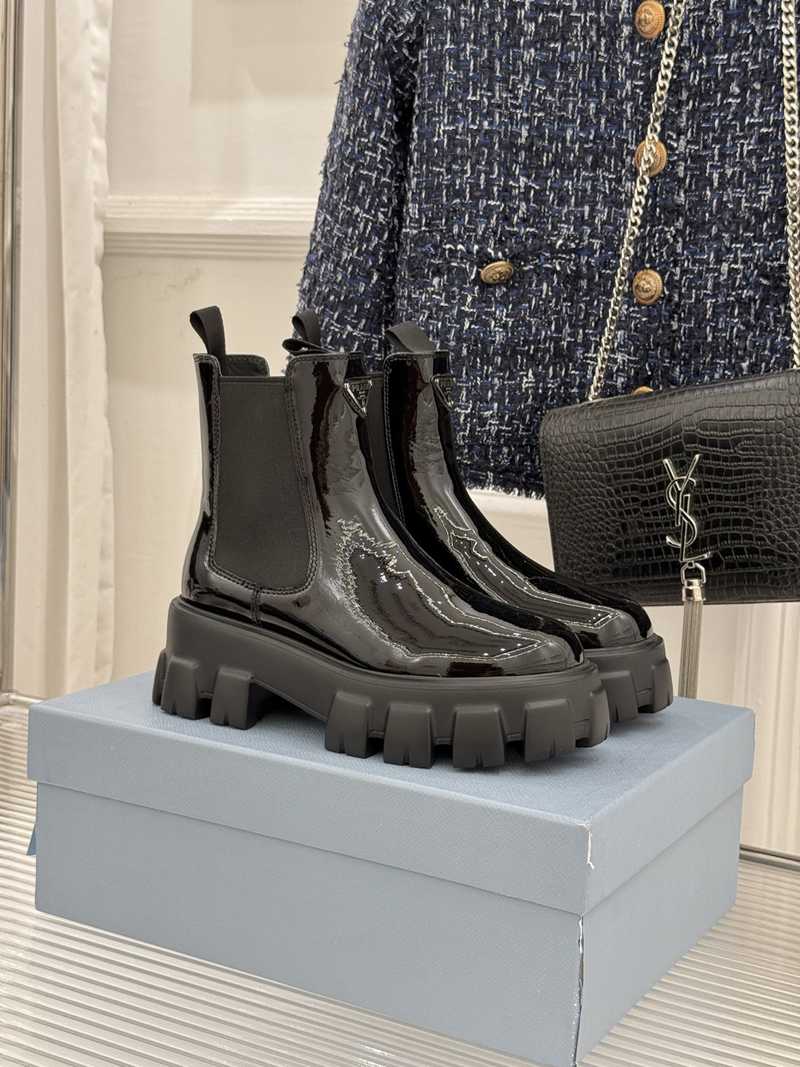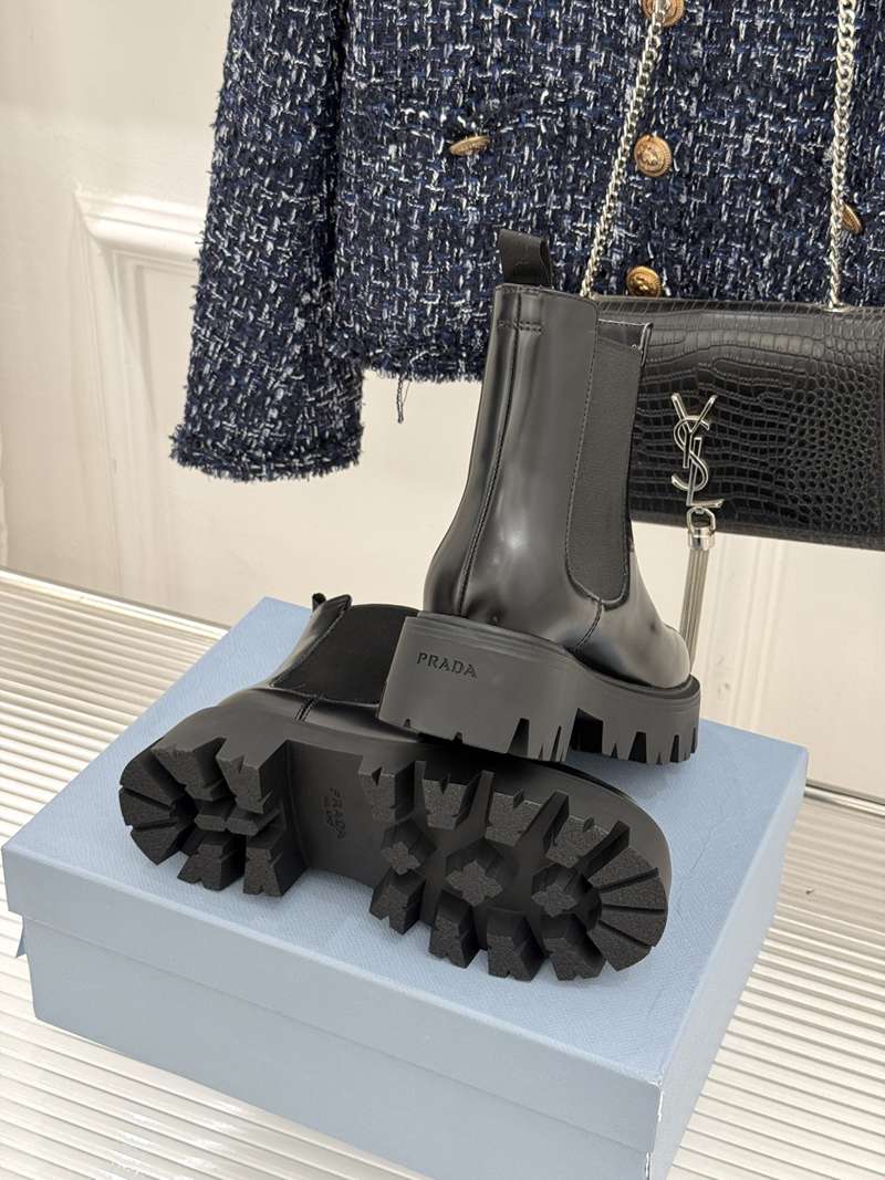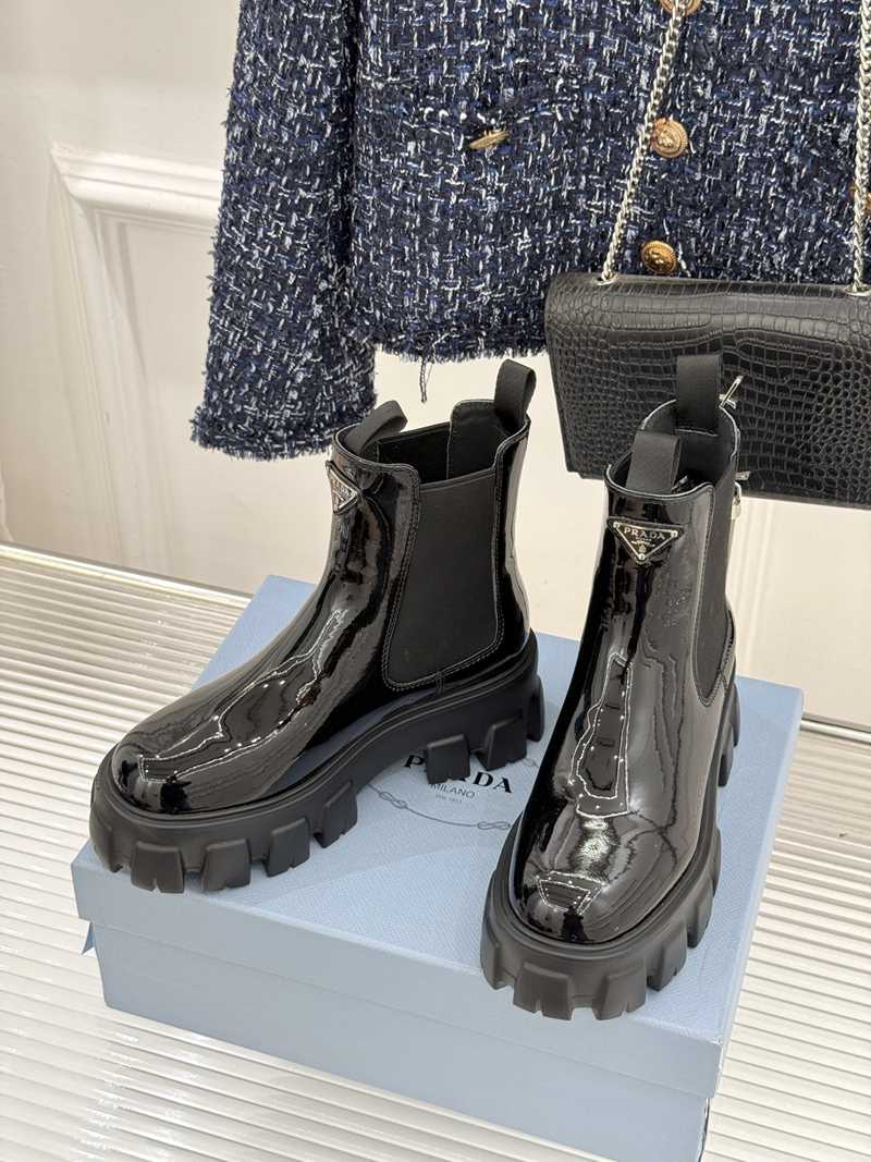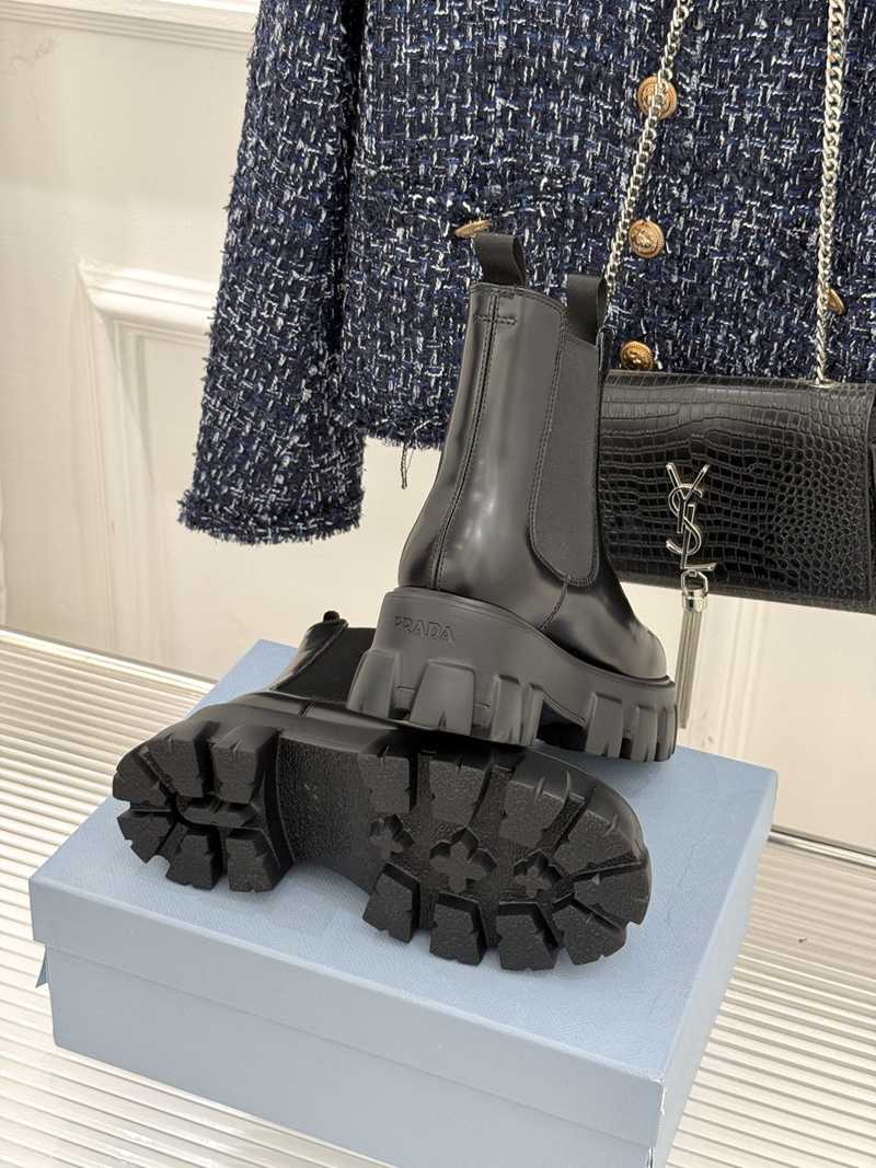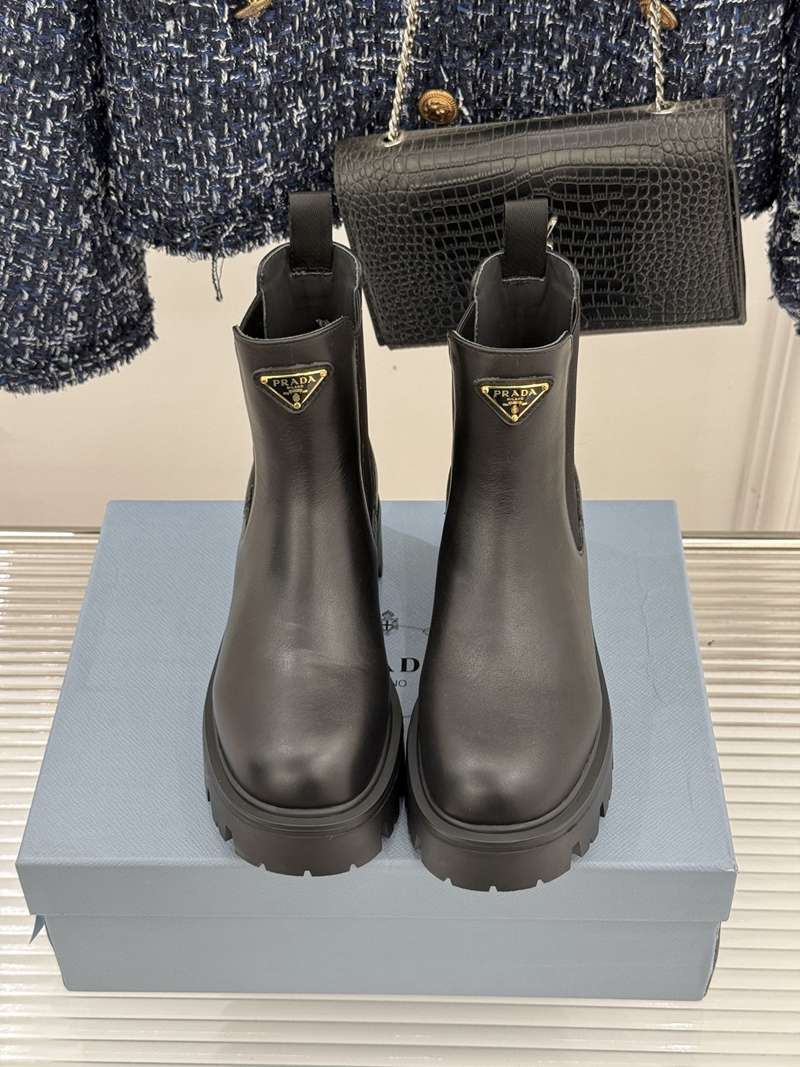 ST11585 prada Winter women's motorcycle boots, fashionable and high-quality, classic triangle logo thick soled short boots