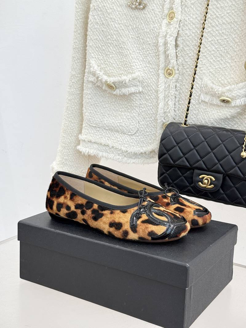 Chanel classic vintage double C diamond grid wholesale Bow leopard print horsehair ballet shoes, with a delicate interpretation of leopard print horsehair on the upper Each stitch is imbued with the handmade warmth of an experienced craftsman, echoing the exquisite big double C logo on the toe of the shoe Quietly narrating the classic inheritance. Inject a touch of softness and playfulness into the retro tone It's precisely Xiaoxiang's romantic scheming hidden in the details Whether paired with vintage plaid skirts to showcase French style The fabric is made of original customized materials The tiptoes inside are all made of sheepskin Original mold customized anti slip outsole
