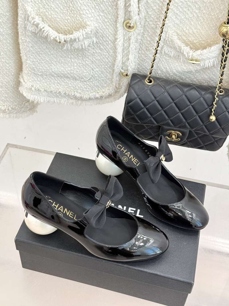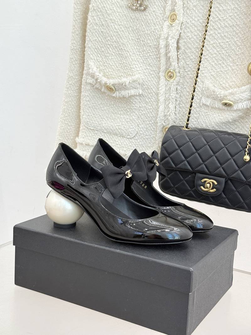ST80511 chanel Chanel Classic Double C Giant Pearl High Heels Butterfly Knot Thick Heels Mary Jane Shoes Luxury Design Brand Shoes