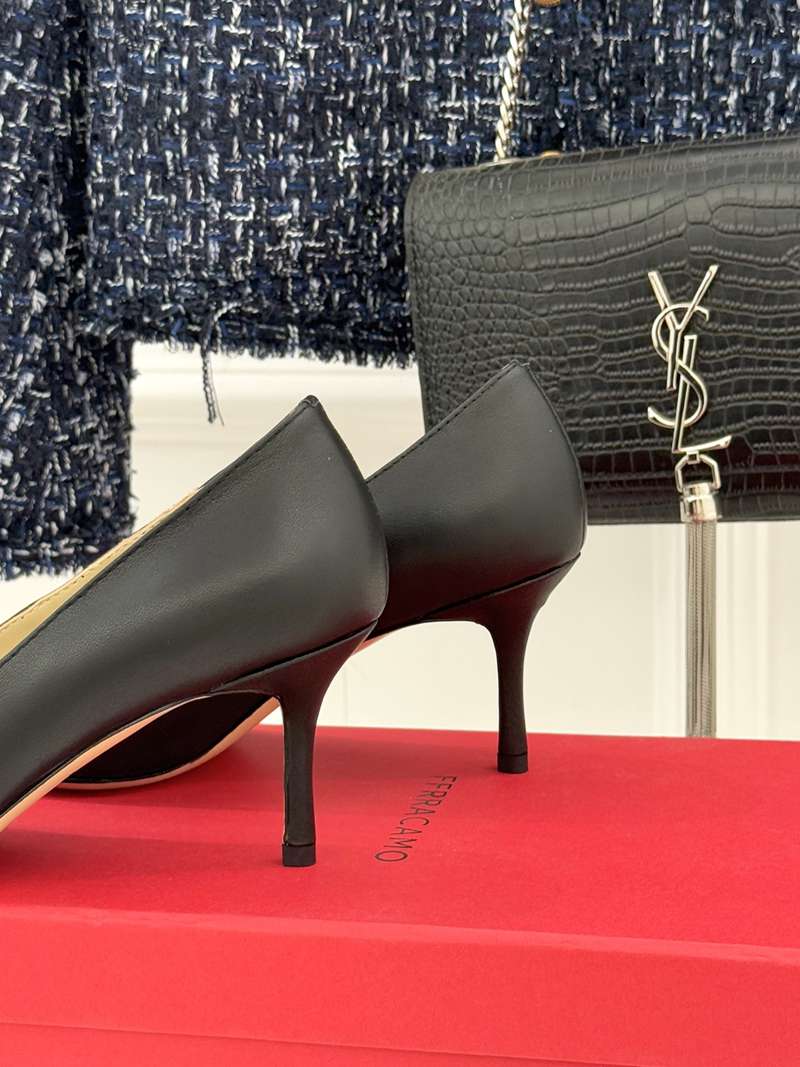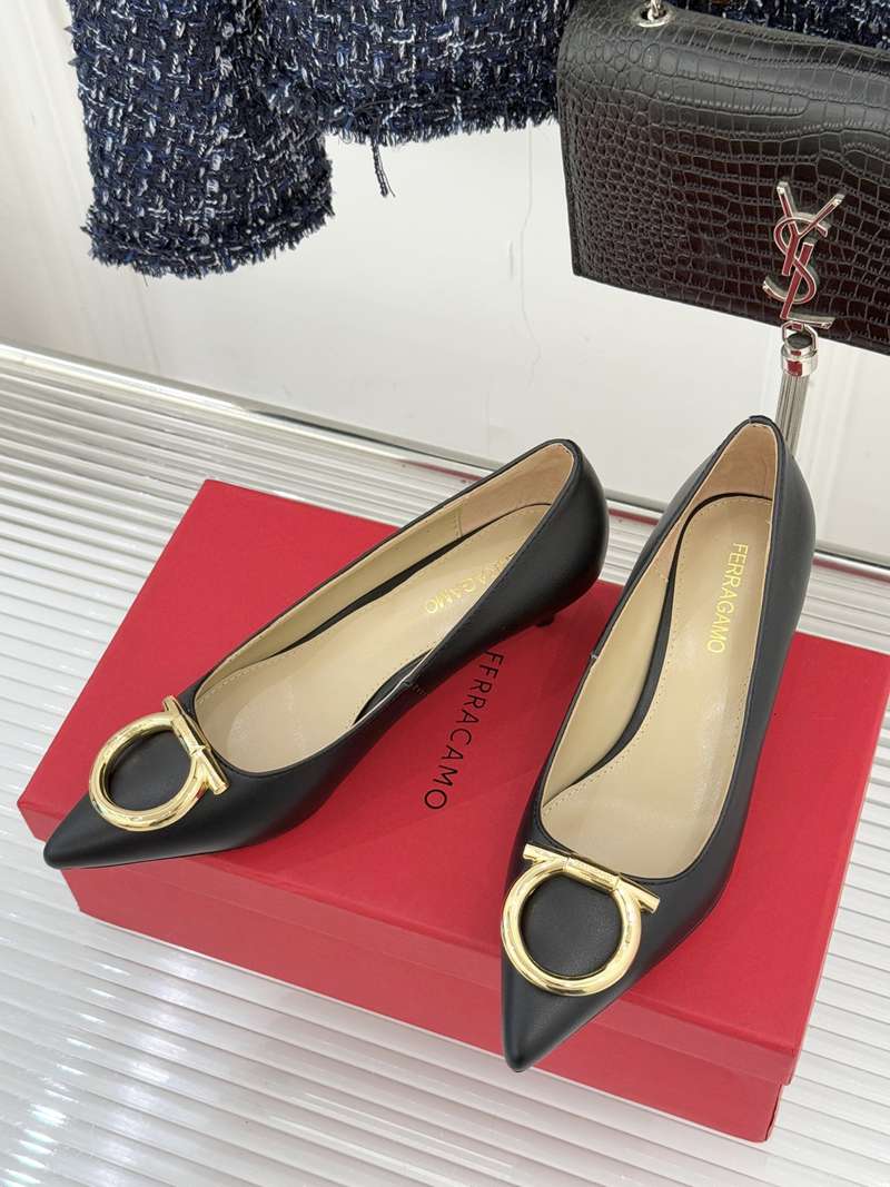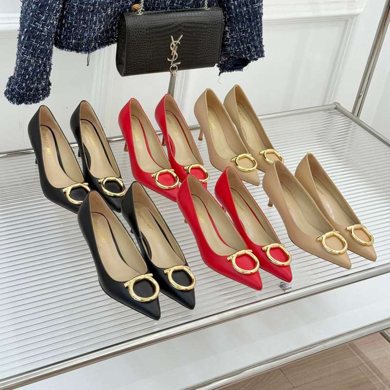 Home>Shoes>Women High Heels>Thin Heels> ST00365 FERRAGAMO Large metal buckle pointed high heels fashionable and elegant slim heel genuine leather high heels