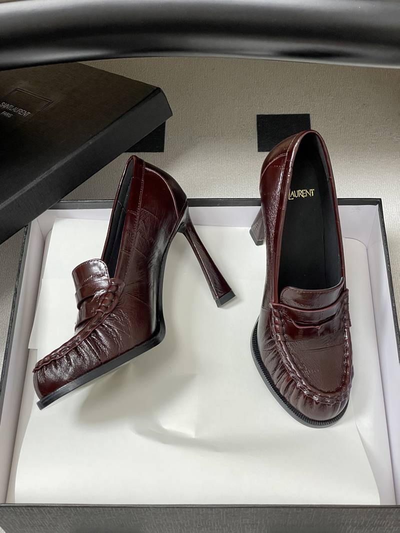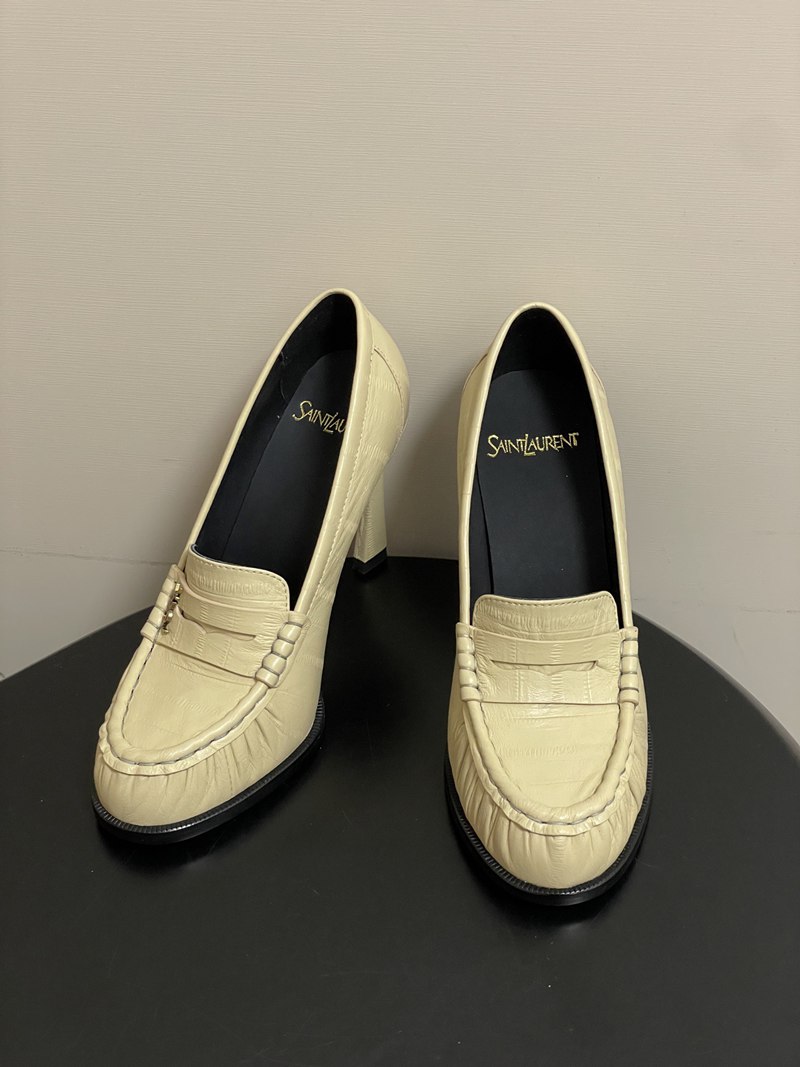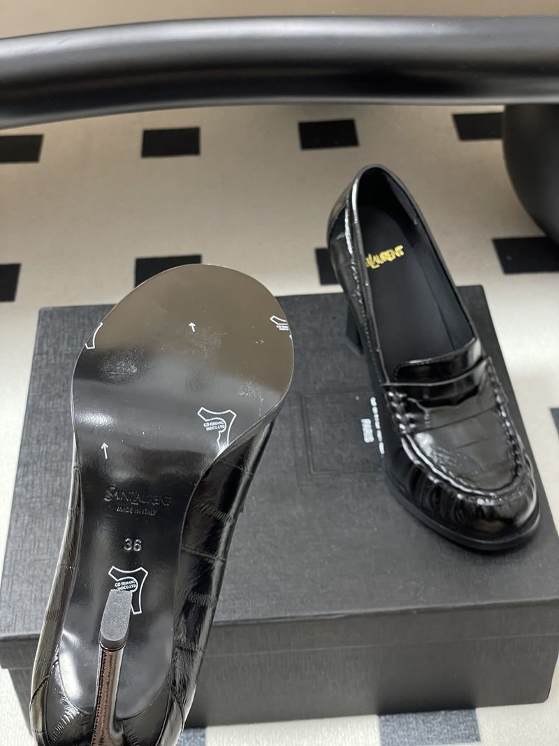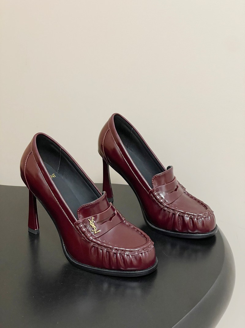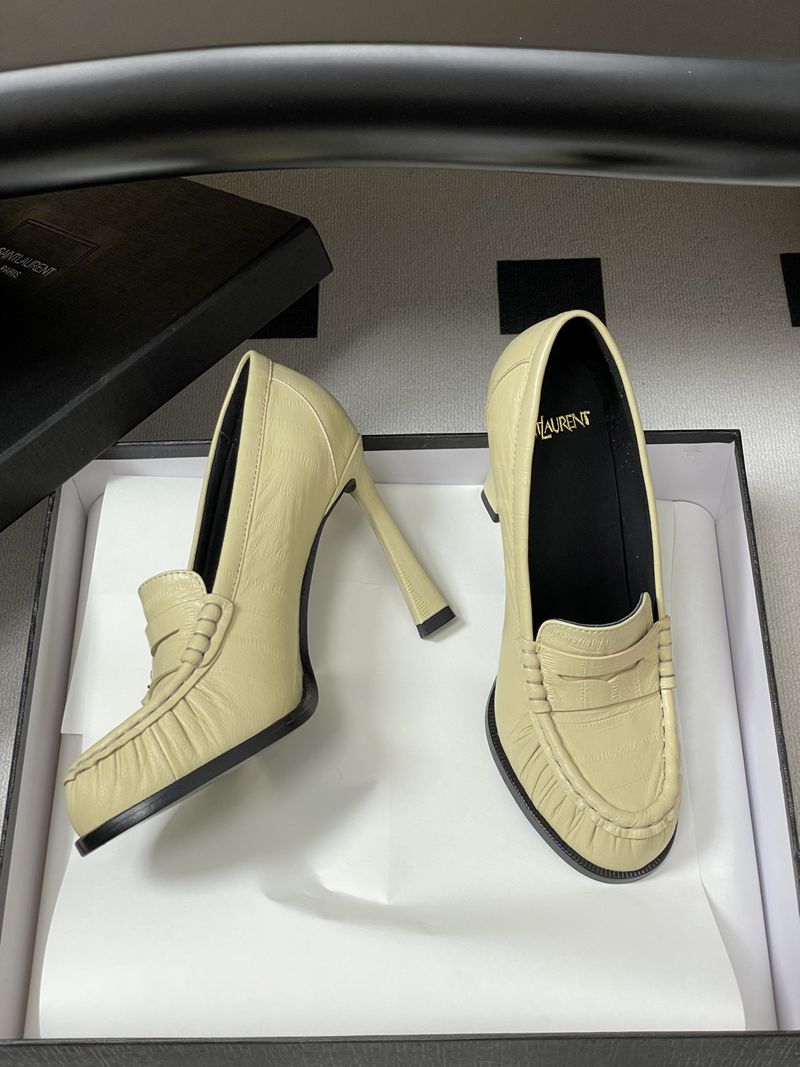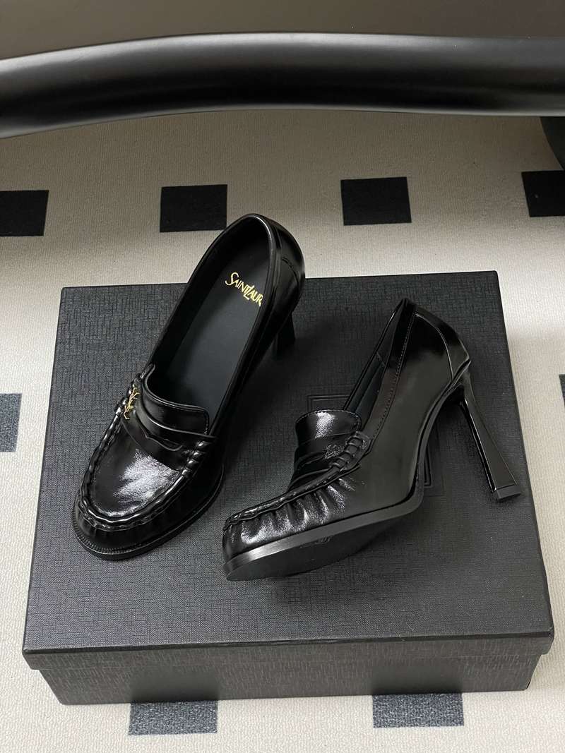 Saint Laurent Top Quality High Heels Lefu Shoe Series Wholesale Spring/Summer New Vintage Texture Eel Pattern Wrinkle High Heels Le Fu Shoes/Muller Shoes Suede Suede Old Money Style High Heels Single Shoes/Half Slippers One Step Casual Shoes Iconic pleated toe cap with handmade moxa stitching, featuring a vintage and relaxed feel; The shoe body features the classic one foot design of Le Fu shoes, paired with a metal YSL logo, which is simple yet recognizable. Leather lining+genuine leather outsole, with both texture and comfort in place. Strong style adaptability, suitable for both formal wear (suit/skirt) and casual wear, jeans/hoodies, creating a relaxed feeling, belonging to the "one shoe, multiple wear" light luxury item. Shoe upper: cowhide/tire cow suede/avocado leather Inner footrest: Silk sheepskin Sole: Italian double-layer thick leather outsole Heel height:10cm