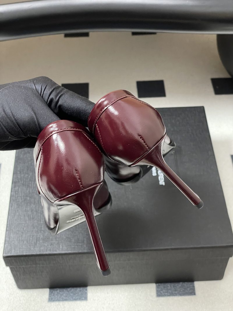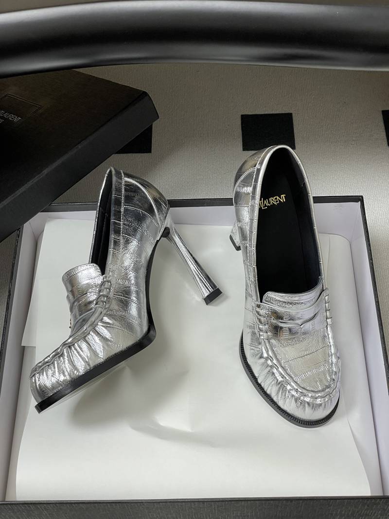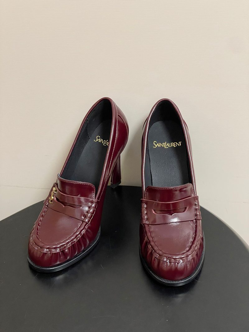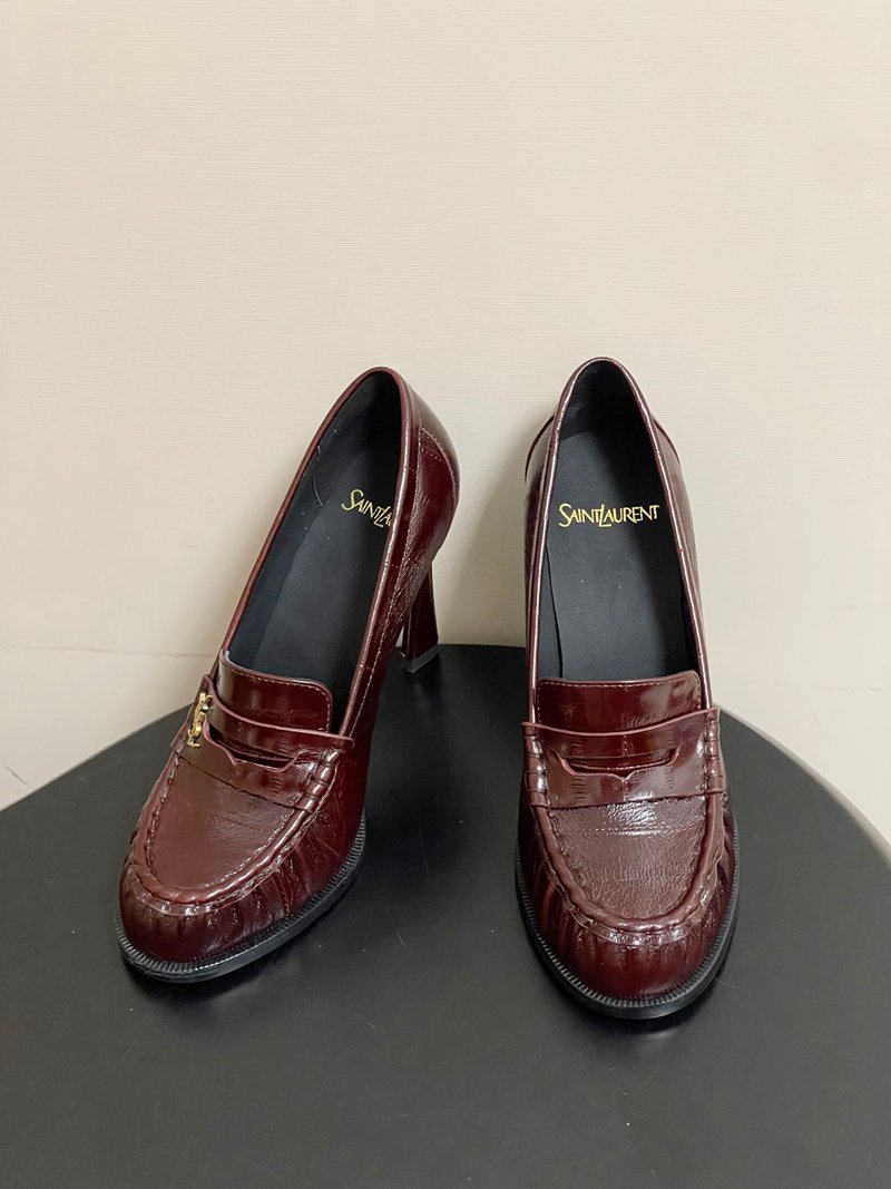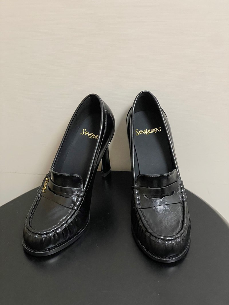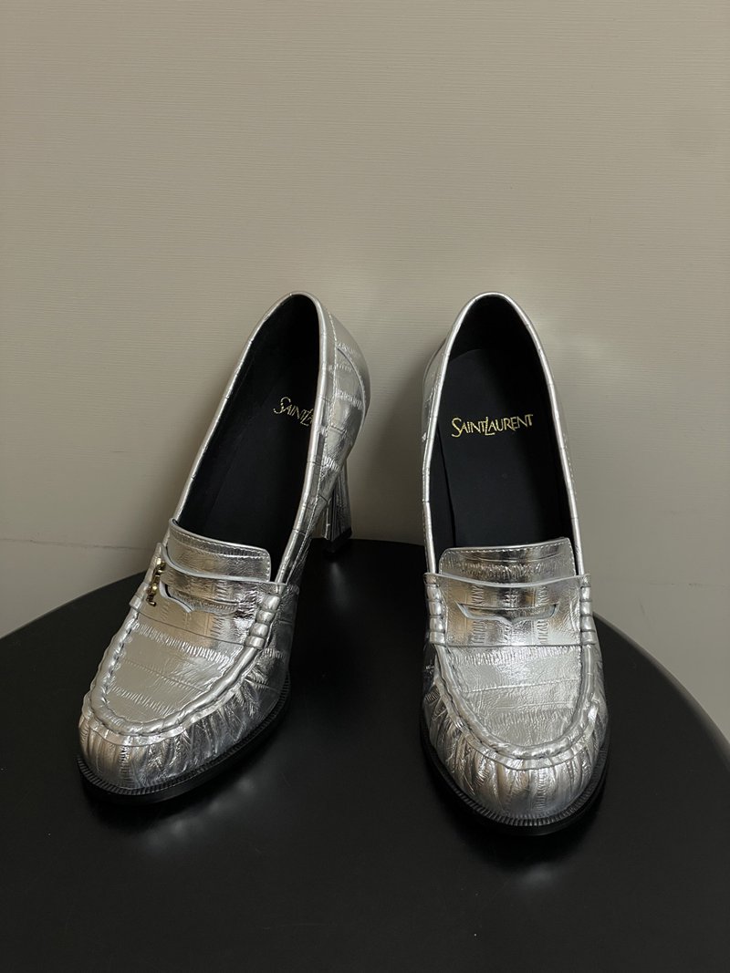 Saint Laurent Top Quality High Heels Lefu Shoe Series Wholesale Spring/Summer New Vintage Texture Eel Pattern Wrinkle High Heels Le Fu Shoes/Muller Shoes Suede Suede Old Money Style High Heels Single Shoes/Half Slippers One Step Casual Shoes Iconic pleated toe cap with handmade moxa stitching, featuring a vintage and relaxed feel; The shoe body features the classic one foot design of Le Fu shoes, paired with a metal YSL logo, which is simple yet recognizable. Leather lining+genuine leather outsole, with both texture and comfort in place. Strong style adaptability, suitable for both formal wear (suit/skirt) and casual wear, jeans/hoodies, creating a relaxed feeling, belonging to the "one shoe, multiple wear" light luxury item. Shoe upper: cowhide/tire cow suede/avocado leather Inner footrest: Silk sheepskin Sole: Italian double-layer thick leather outsole Heel height:10cm
