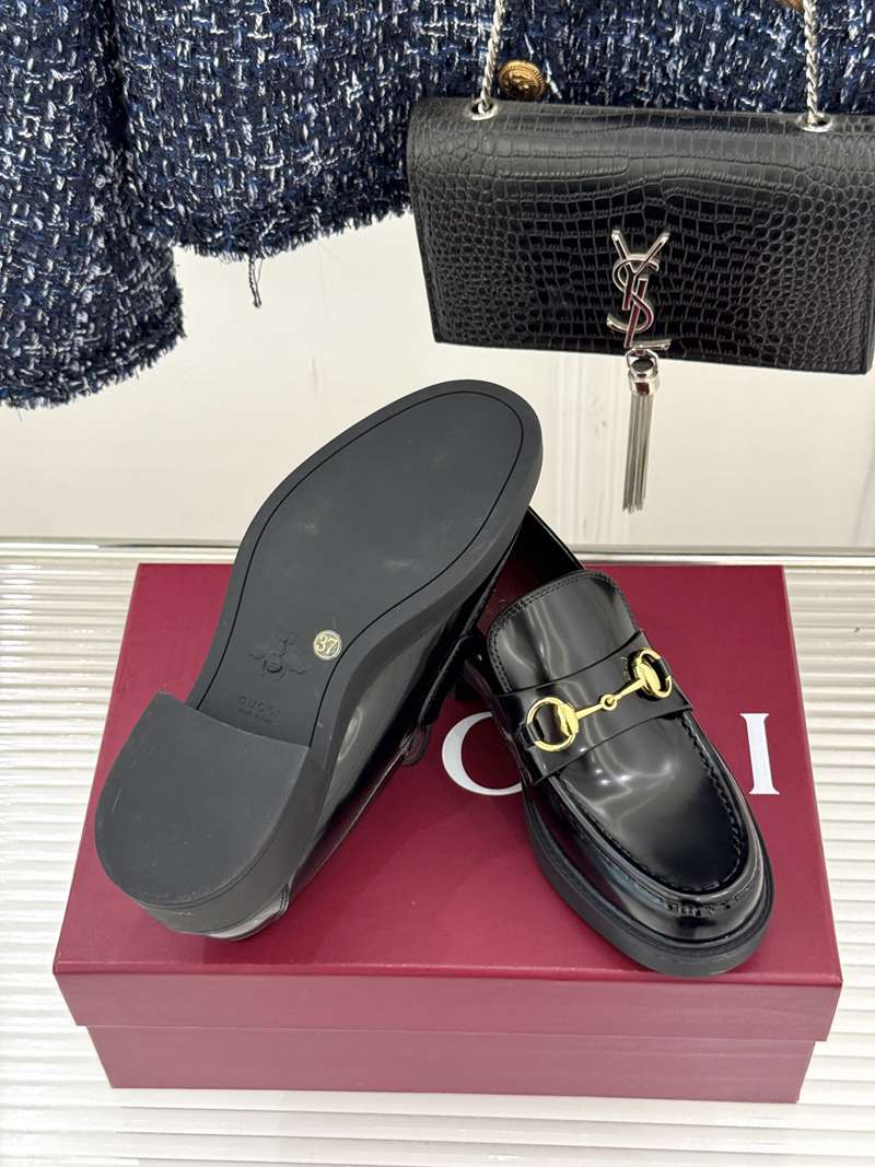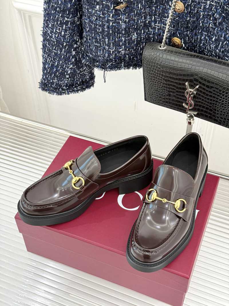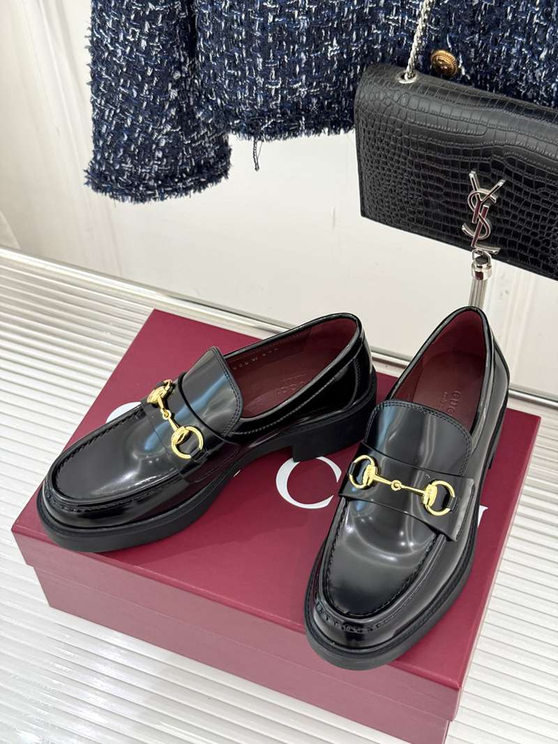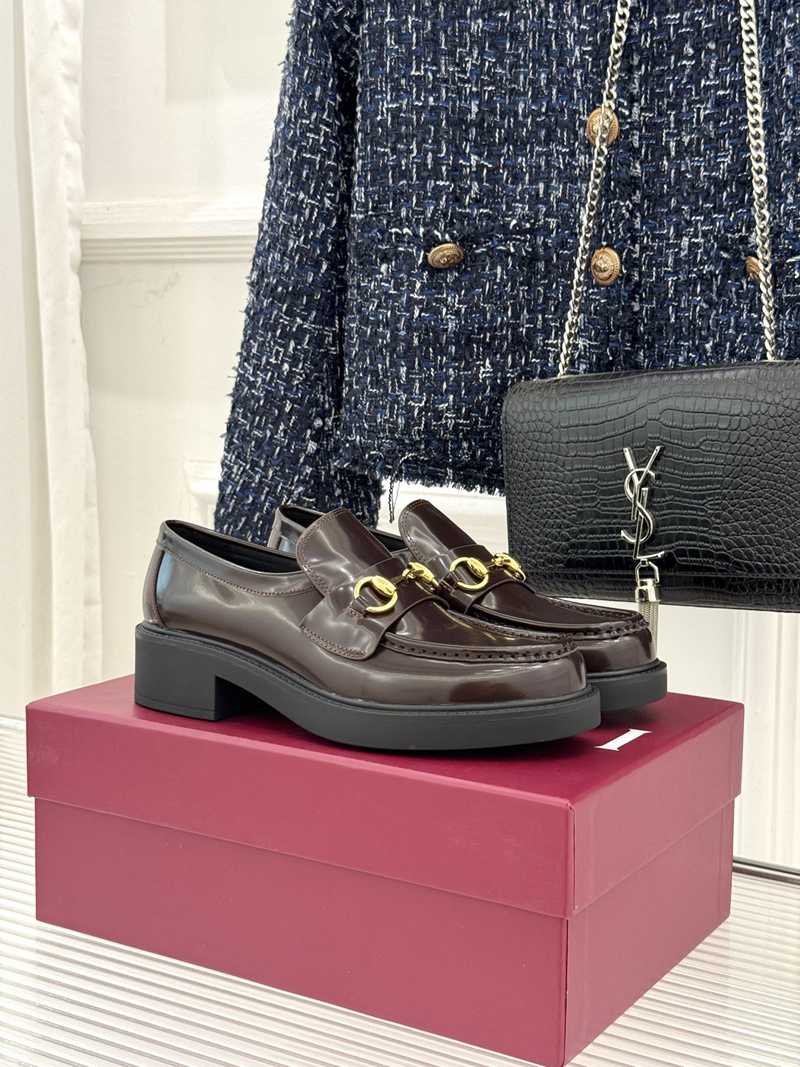 Gucci new product, horse collar buckle thick soled loafers and short boots, wholesale, bringing Gucci's classic fashion sense to the feet Looking for a pair of shoes that can combine comfort and style, this is the "dream shoe" that I have been dreaming of It cleverly blends the elegance, casualness, comfort, and practicality of loafers, with the iconic horseclip presented in a golden metallic texture, Perfectly integrating a century old equestrian heritage with a trendy attitude, placing it on the shoe upper instantly brightens up the overall look No matter how it is paired, it will showcase unique taste. The thick bottom design can be called a "careful machine" with a thickness of 3.5 centimeters Not only does it silently stretch the lines of the long legs, creating a visual and comfortable walking experience, but it also feels soft and elastic, Wear it with jeans to create a casual and relaxed street look. Simply put on a dress to easily create an elegant and intellectual urban beauty image. Whether it's daily outings, friend gatherings, or business commuting, it can perfectly adapt to become the finishing touch of the overall design. The fabric is made of original customized leather The inner foot pads are all made of sheepskin Original mold customized anti slip outsole