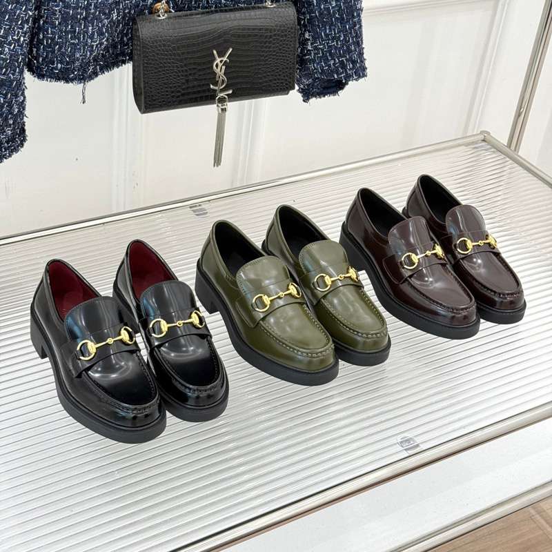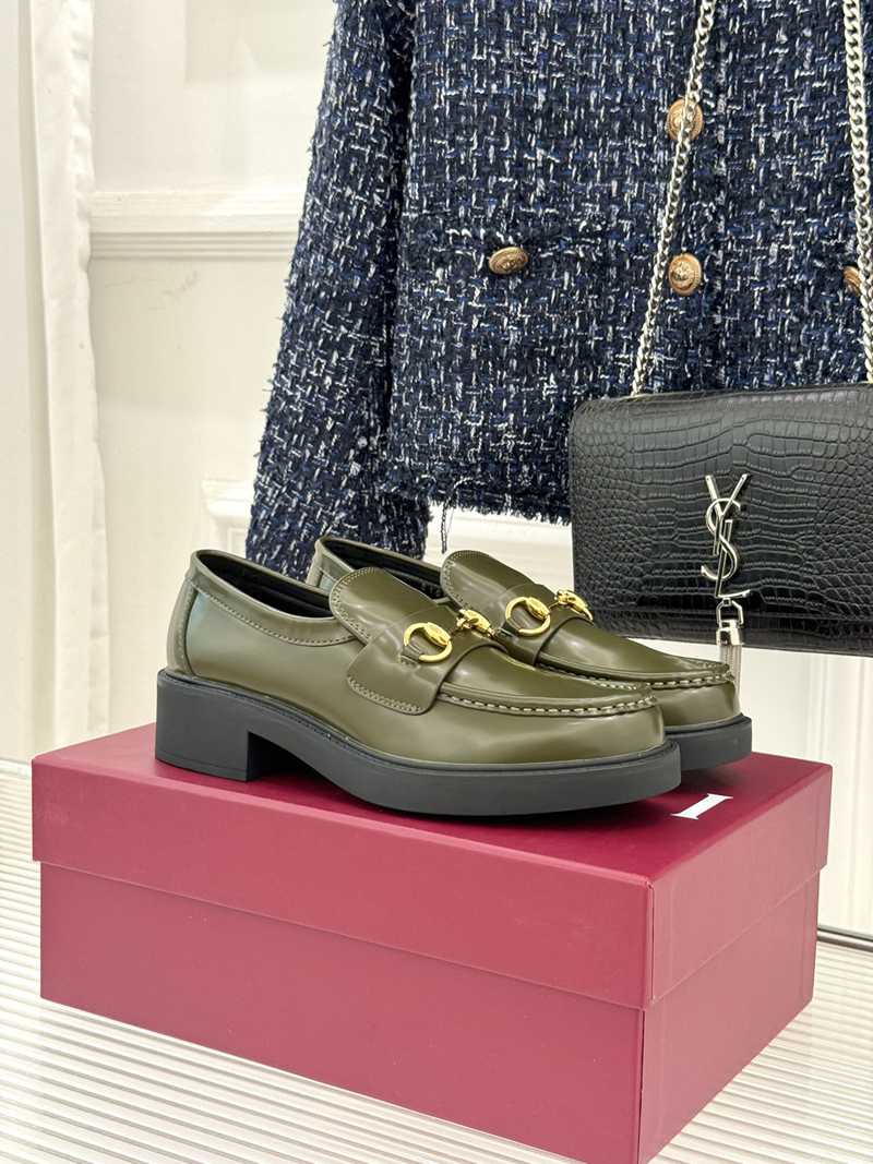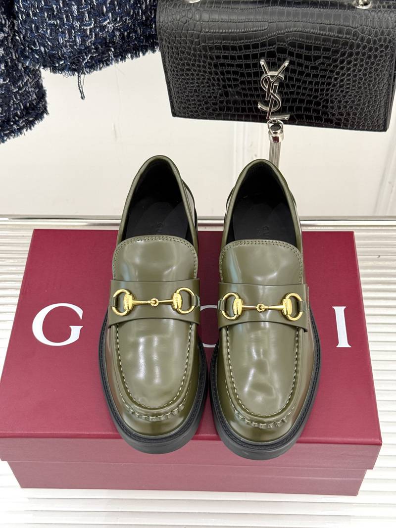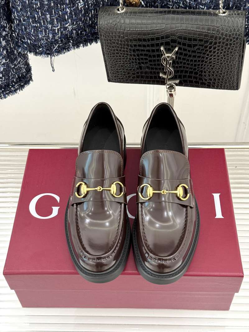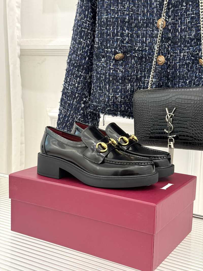 Gucci new product, horse collar buckle thick soled loafers and short boots, wholesale, bringing Gucci's classic fashion sense to the feet Looking for a pair of shoes that can combine comfort and style, this is the "dream shoe" that I have been dreaming of It cleverly blends the elegance, casualness, comfort, and practicality of loafers, with the iconic horseclip presented in a golden metallic texture, Perfectly integrating a century old equestrian heritage with a trendy attitude, placing it on the shoe upper instantly brightens up the overall look No matter how it is paired, it will showcase unique taste. The thick bottom design can be called a "careful machine" with a thickness of 3.5 centimeters Not only does it silently stretch the lines of the long legs, creating a visual and comfortable walking experience, but it also feels soft and elastic, Wear it with jeans to create a casual and relaxed street look. Simply put on a dress to easily create an elegant and intellectual urban beauty image. Whether it's daily outings, friend gatherings, or business commuting, it can perfectly adapt to become the finishing touch of the overall design. The fabric is made of original customized leather The inner foot pads are all made of sheepskin Original mold customized anti slip outsole