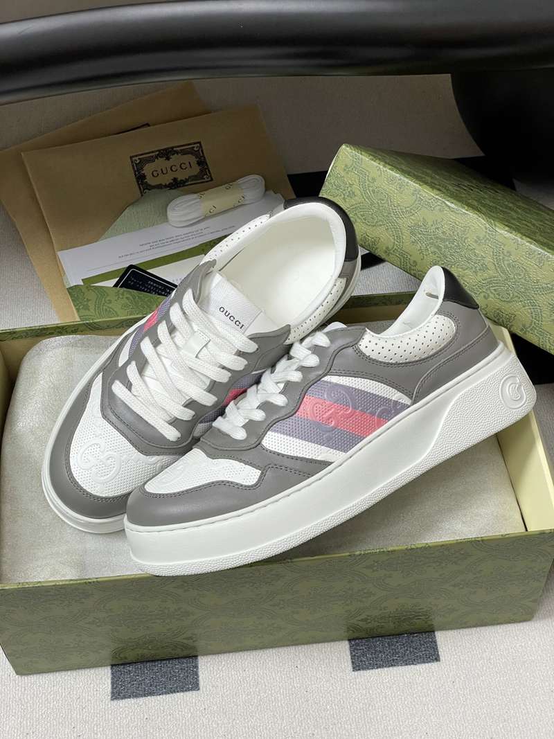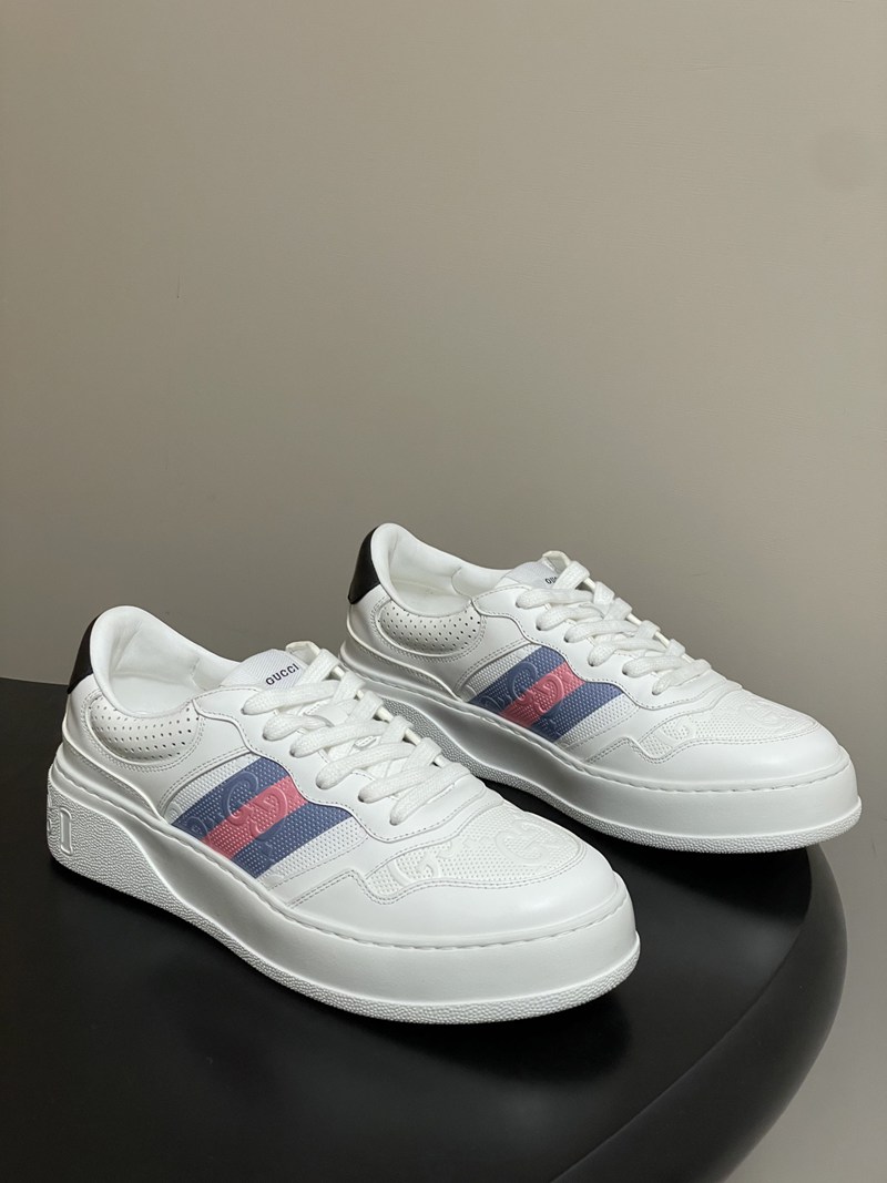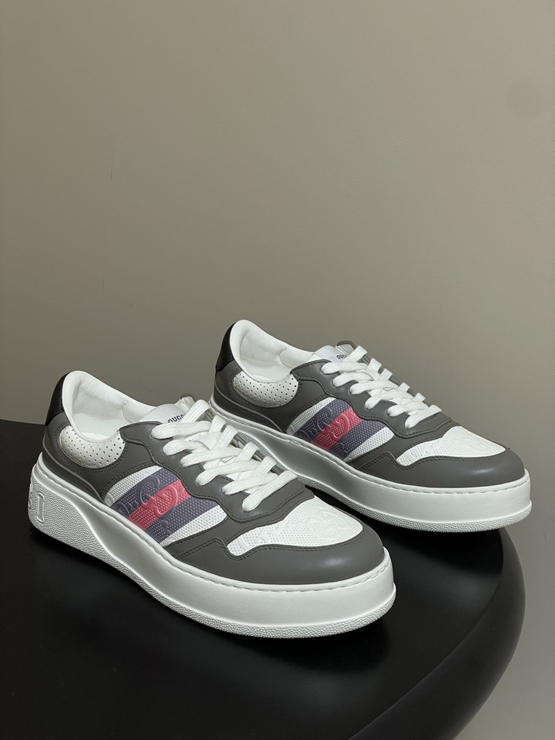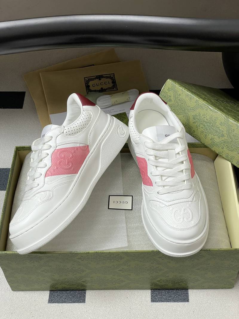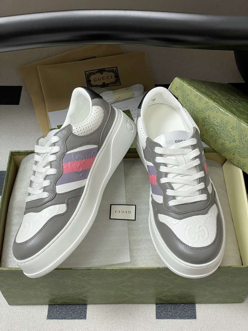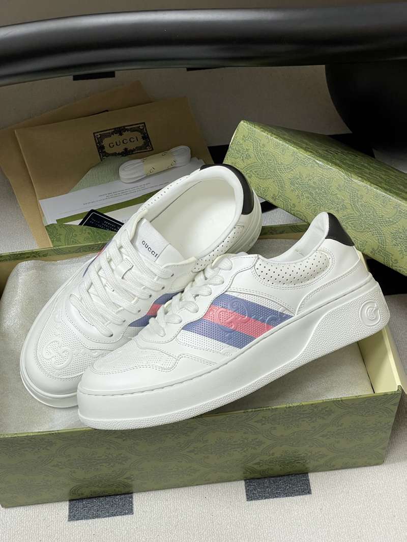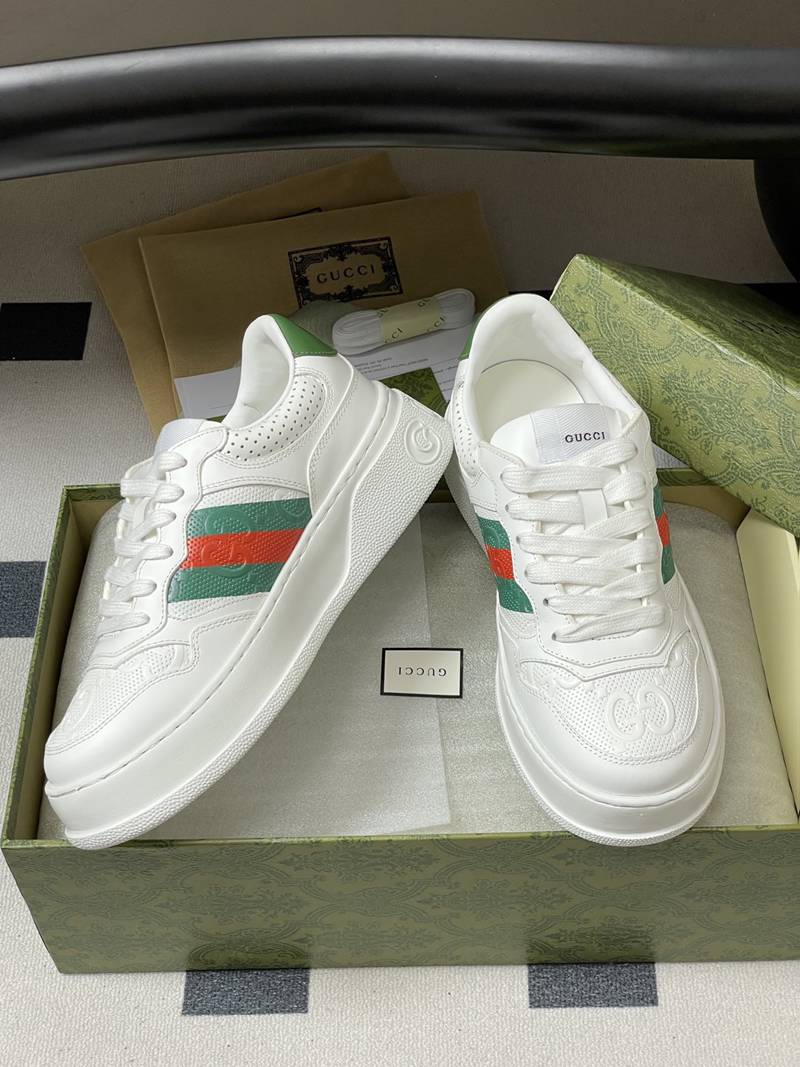 GUCCI ST85708 Couple style sports shoes lace up casual training shoes white shoes thick soled biscuit shoes breathable mesh casual shoes